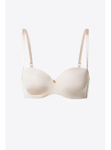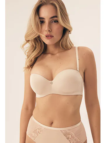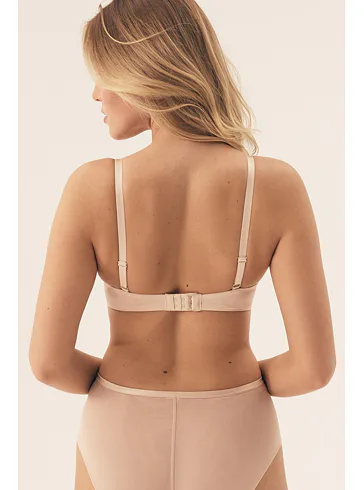 Balkónová podprsenka s kosticami má odnímateľné vystuženie a odopínacie ramienka. Silikónové prúžky na vnútornej strane obvodu zaistia, že vám podprsenka bude dobre sedieť aj bez ramienok. Hladké vystužené košíčky nebudú viditeľné pod oblečením. Vzadu má dva háčiky s tromi uťahovacími polohami a ramienka si môžete nastaviť podľa potreby. Zvýraznite svoj dekolt sexi push up podprsenkou v telovej farbe, ktorá poskytne vašim prsiam potrebnú oporu.