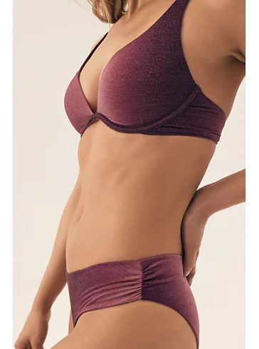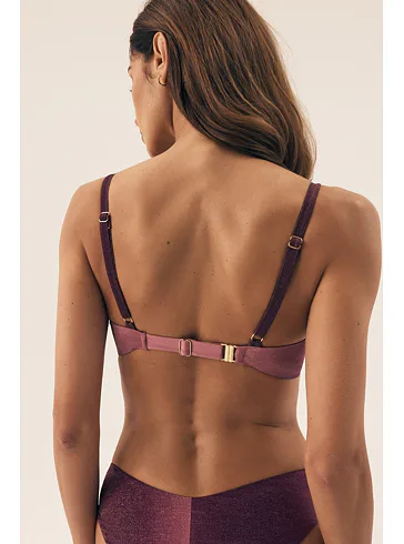 Vystužená plavková podprsenka s kosticami vytvaruje a podrží poprsie na svojom mieste. Zaujme trblietavým efektom, ktorý dodáva plavkám elegantný a luxusný vzhľad. Ramienka je možné nastaviť podľa potreby a nikde sa nezarezávajú. Zapínanie sa nachádza vzadu na sponu. Lurexové vlákno sa krásne leskne a dobre drží svoj tvar. Staňte sa kráľovnou pláže v ružovej plavkovej podprsenke, v ktorej budete neprehliadnuteľná. K tejto podprsenke si možno zaobstarať alebo a vytvoriť tak dokonalý letný set.