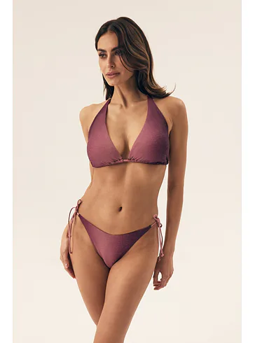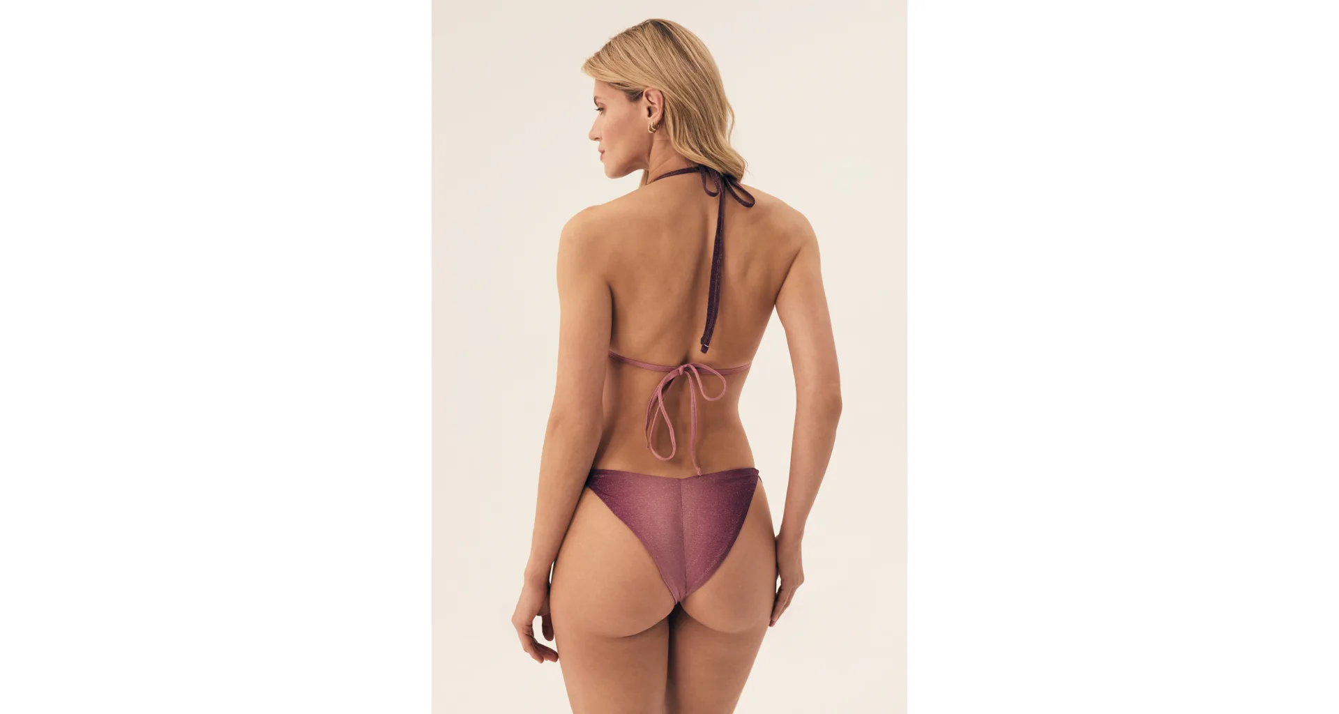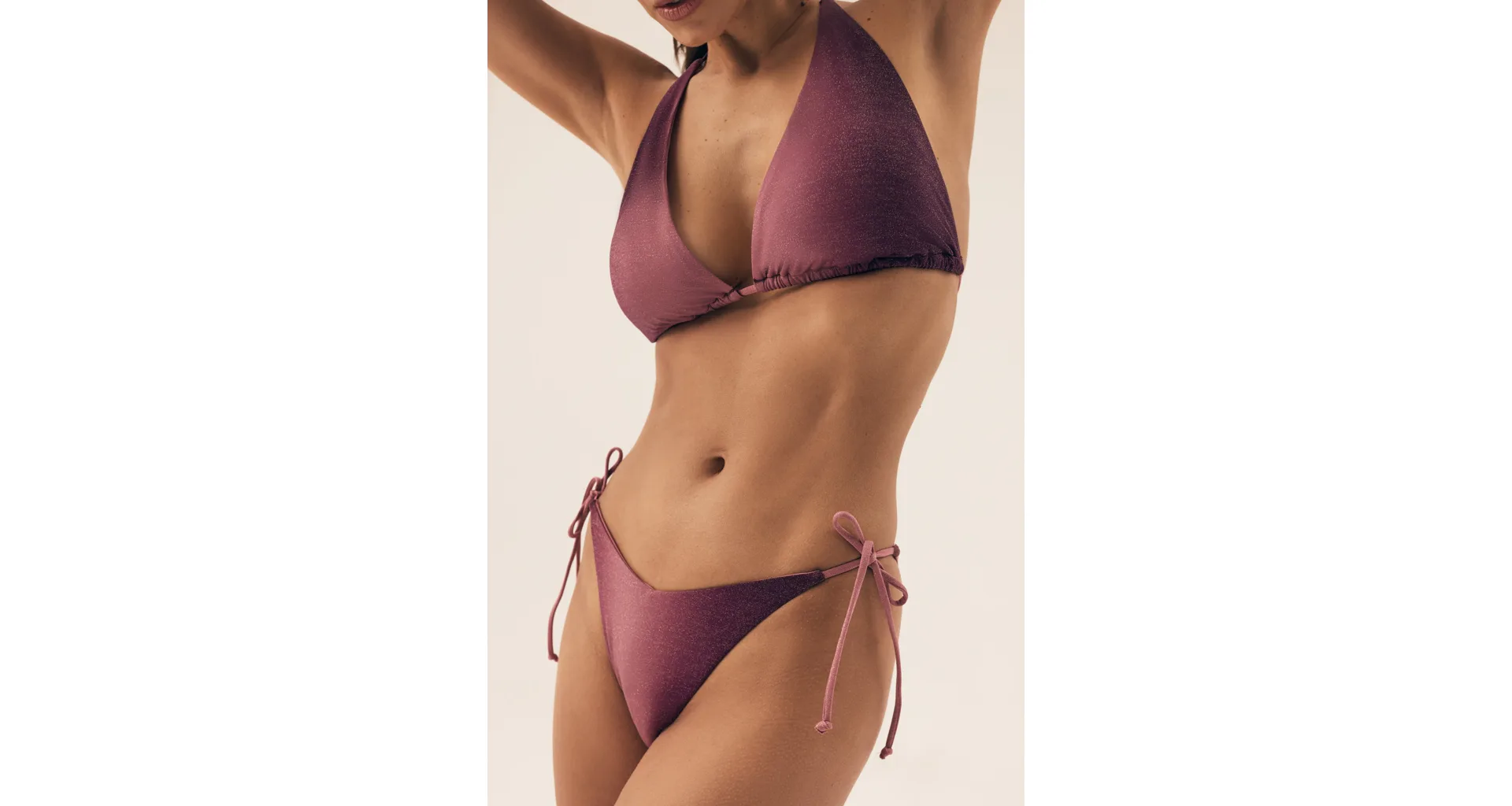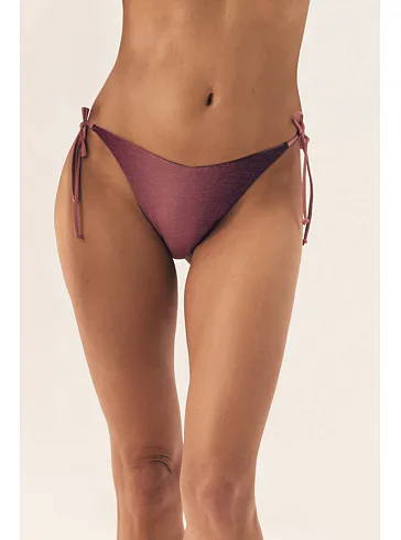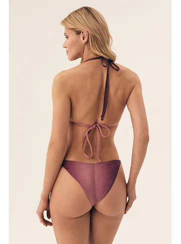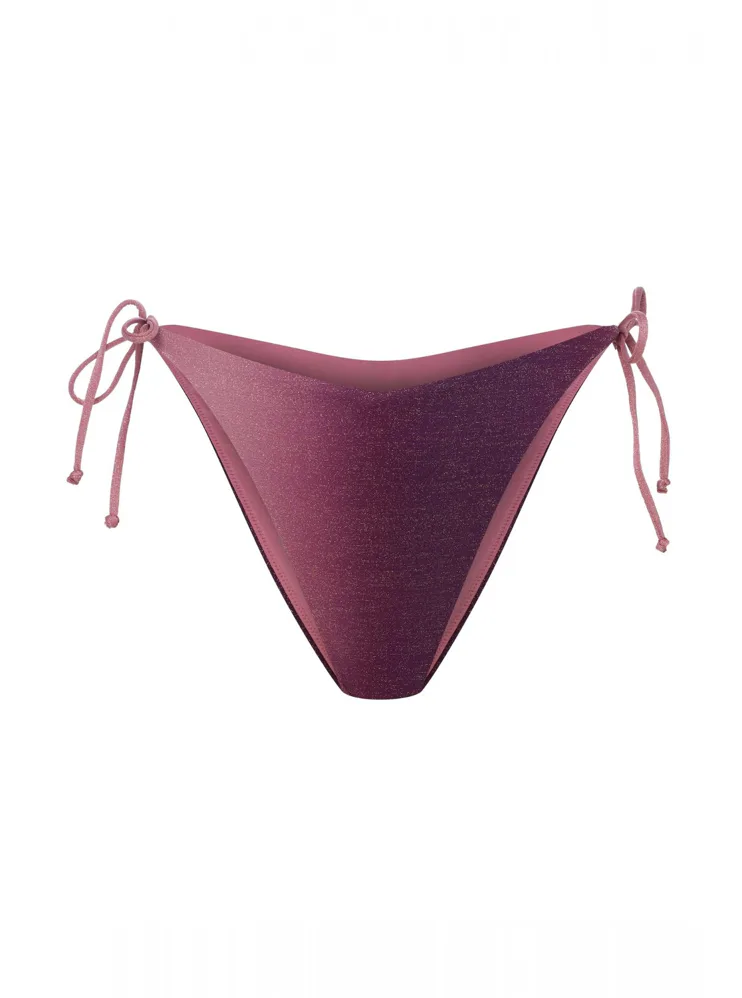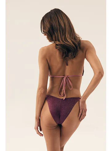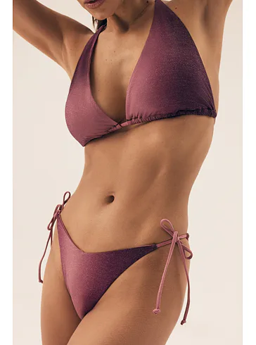 Ružové plavky z jemne trblietavého lurexu zaručia, že budete neprehliadnuteľná, či už na pláži alebo pri bazéne. Na bokoch sú umiestnené tenké šnúrky na zaväzovanie. povoliť podľa svojich potrieb, čo zaisťuje maximálny komfort. trblietavý efekt a vyniká odolnosťou voči slnečnému žiareniu.