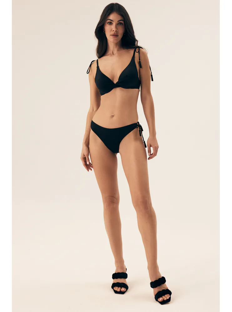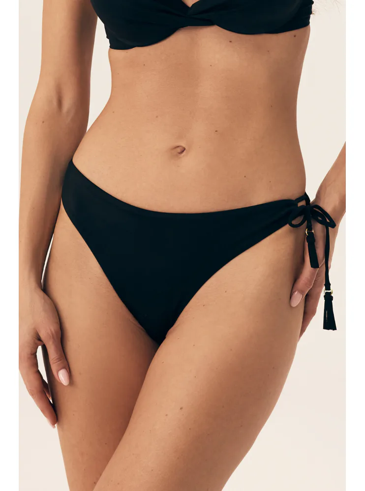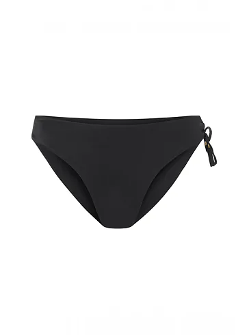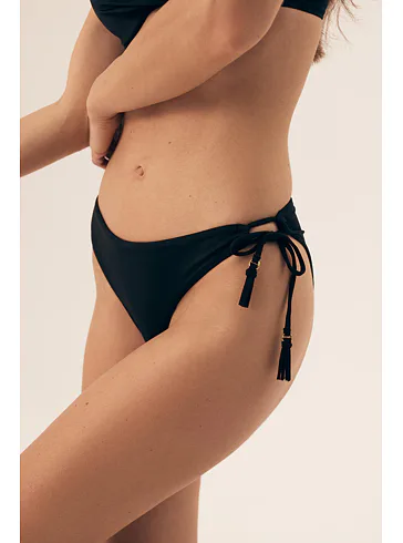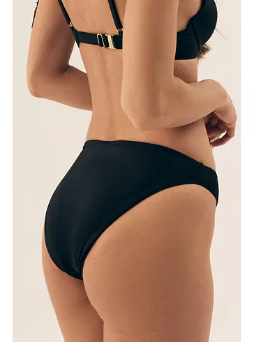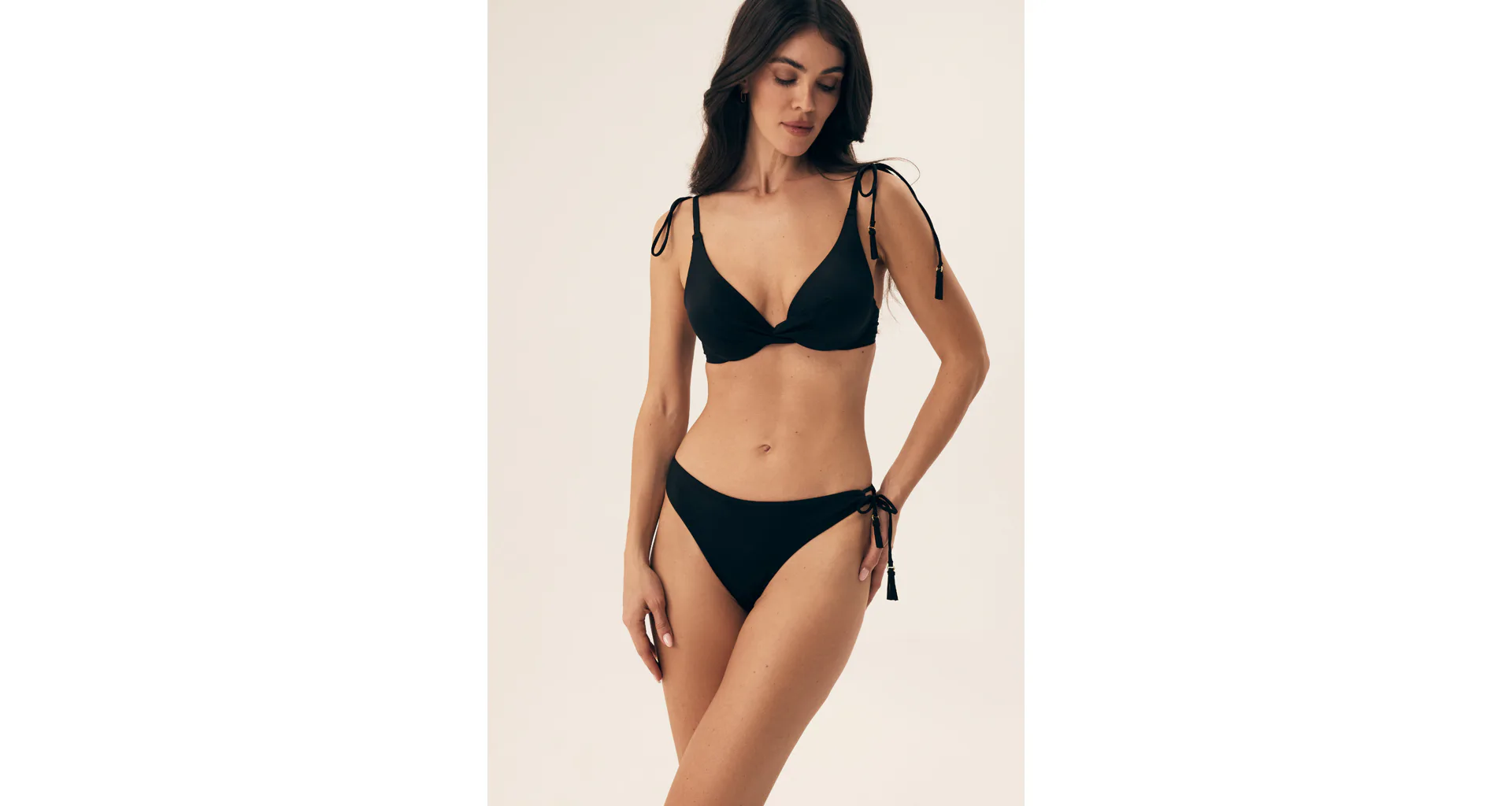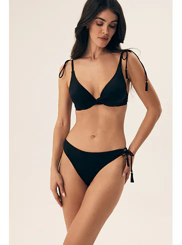 Klasické plavkové nohavičky v čiernej farbe zaujmú asymetrickým detailom na boku. Vyskúšajte klasický strih nohavičiek, ktorý sluší každej postave. Nohavičky zakryjú zadoček, podčiarknu vaše ženské krivky a nikde netlačia. Zaobstarajte si dvojdielne dámske plavky, v ktorých sa budete cítiť sexy a sebavedome. K nohavičkám je možné zaobstarať aj plavkovú podprsenku z rovnakej kolekcie.