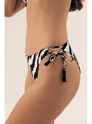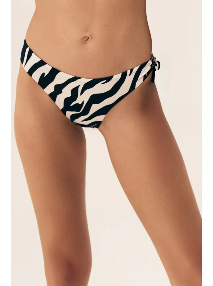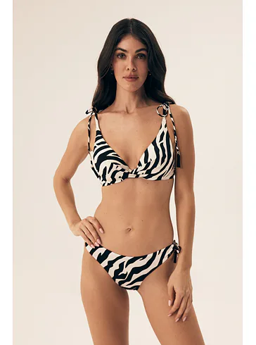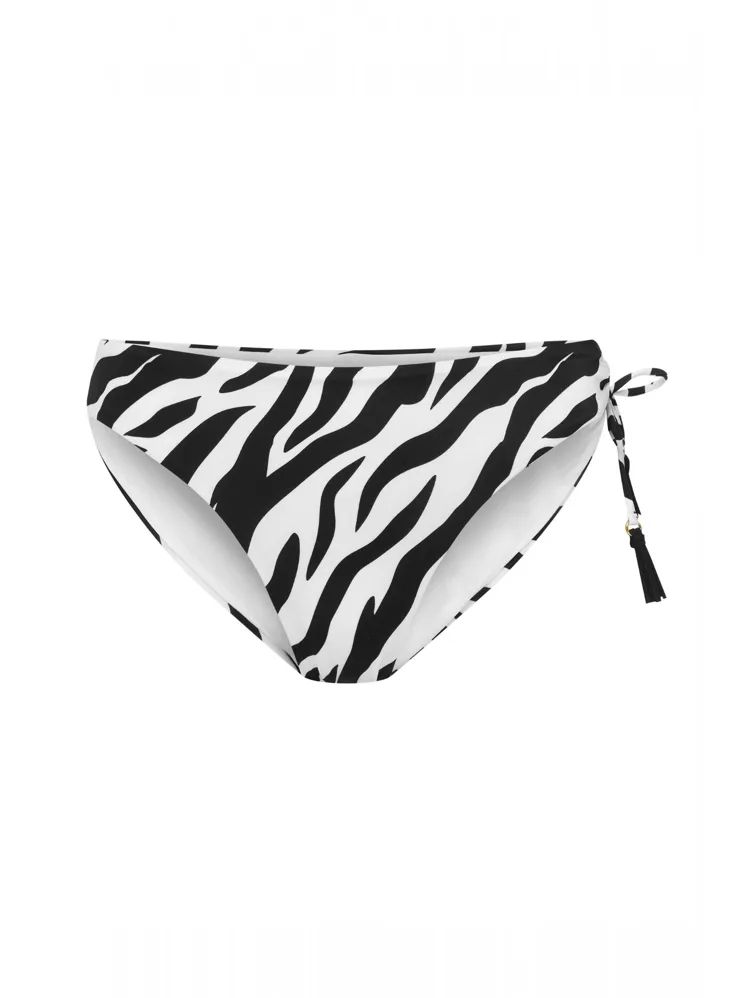 Klasické plavkové nohavičky so zebrovaným vzorom zaujmú asymetrickým detailom na boku. Vyskúšajte klasický strih nohavičiek, ktorý sluší každej postave. Nohavičky zakryjú zadoček, podčiarknu vaše ženské krivky a nikde netlačia. Zaobstarajte si dvojdielne dámske plavky, v ktorých sa budete cítiť sexy a sebavedome. K nohavičkám je možné zaobstarať plavkovú podprsenku Esotiq Zibraz alebo podprsenku pre väčšie prsia a vytvoriť tak dokonalý letný set.