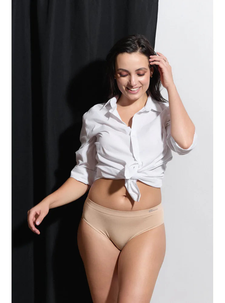 Klasické nohavičky v odtieni telové vám perfektne padnú a dokonale sa prispôsobia vašim krivkám. Bambusové vlákno vás udrží v suchu a pohodlí, dobre odvádza vlhkosť a pot, má antibakteriálne účinky a je veľmi príjemné na dotyk. Hladké nohavičky sa pod oblečením neukučia. Doprajte si kvalitnú spodnú bielizeň od českej značky Gina.