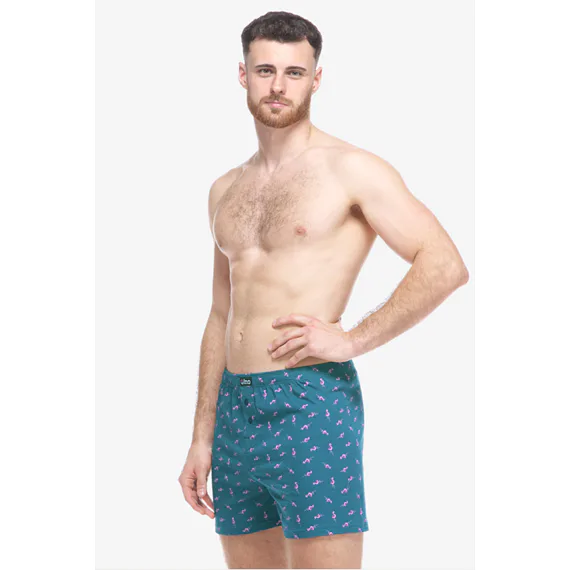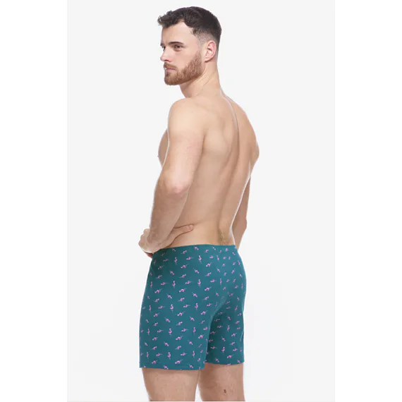 Voľné trenírky zo 100% bavlny sú ideálnou voľbou pre každého, kto má rád klasický pohodlný strih a prírodné materiály. Bavlnené trenírky zaujmú drobným vzorom a dobre padnúcou gumou v páse. Na prednom diele je vypracovaný rozparok na dva gombíky.