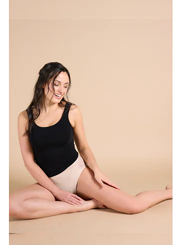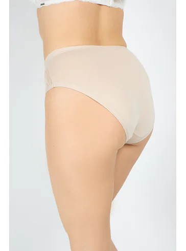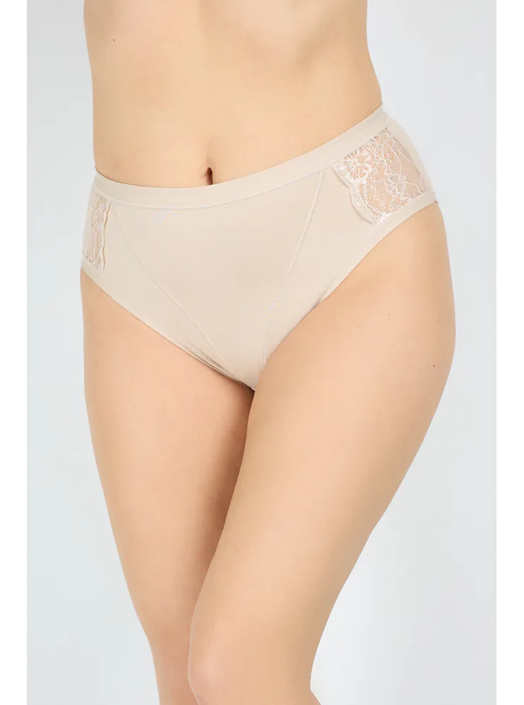 Telové nohavičky z modalového úpletu vynikajú jemnosťou, veľmi dobre absorbujú vlhkosť a zachovávajú si svoju pevnosť aj pri častom praní. Vďaka zvýšenému pásu sa nezhŕňajú dole a perfektne sedia na postave. Nohavičky zdobí na bokoch jemná čipka a ich zadná časť je krásne hladká. Majú zosilnený bavlnený klin na zaistenie maximálneho pohodlia. Nohavičky možno zaobstarať aj v bielej a čiernej farbe. Ideálne pre každodenné nosenie aj výnimočné príležitosti.