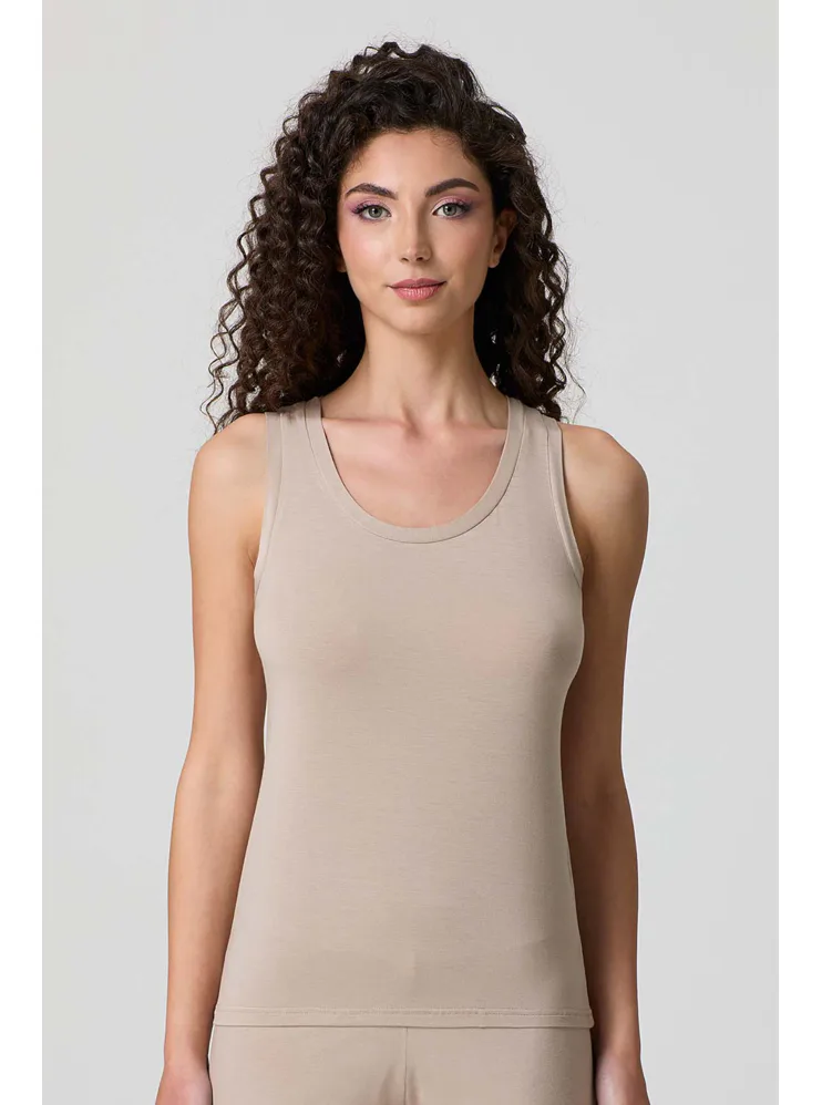 Pohodlné a zároveň elegantné tielko je nepostrádateľným kúskom vo vašom šatníku. Béžové tielko v lete znosíte samostatne k nohaviciam alebo sukni a v zime poslúži ako skvelý základ pre vrstvenie pod košele a svetre. Zvoľte komfort a štýl.