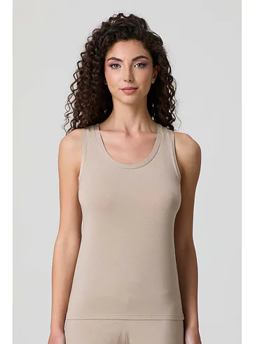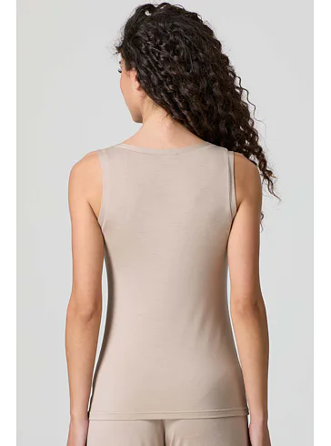 Dámske tielko z elastického úpletu z mikromodalu umožňuje pokožke voľne dýchať, absorbuje vlhkosť a udrží tvar a farbu aj po mnohých praniach. Široké ramienka dodávajú modelu eleganciu a zaistia, že pod nimi schováte podprsenku. Zaobstarajte si tielko, ktoré sa ľahko kombinuje s rôznymi outfitmi.
