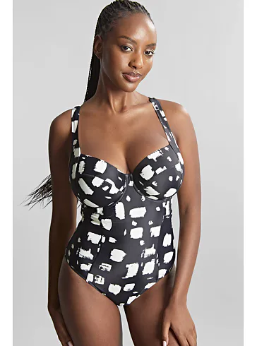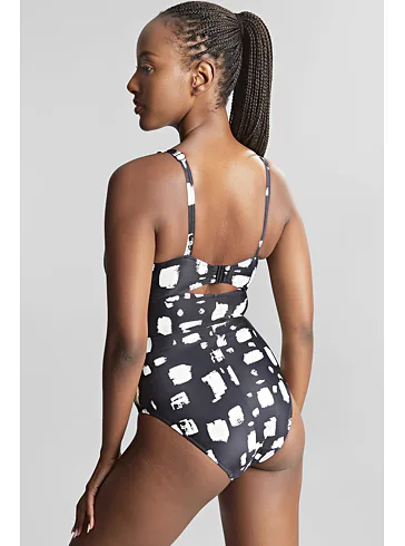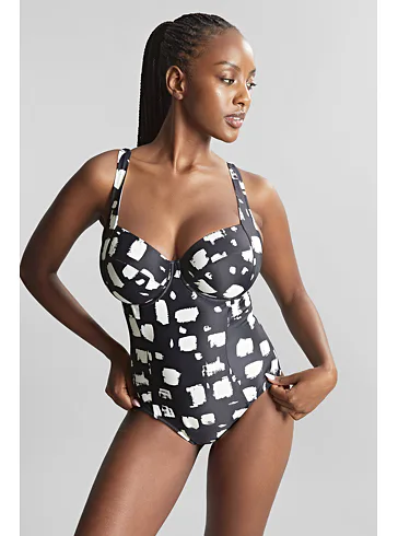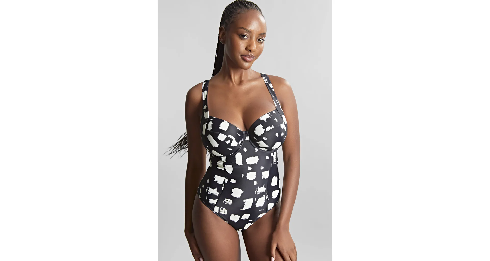 Čiernobiele plavky od Panache sú určené pre majiteľky stredných až veľkých pŕs. Plavky majú balkónový strih s kosticou. Predná časť je v oblasti brucha vystužená a vytvaruje tak vaše krivky. Samozrejmosťou sú nastaviteľné ramienka a zapínanie na chrbát pre lepšiu fixáciu pŕs