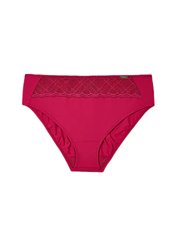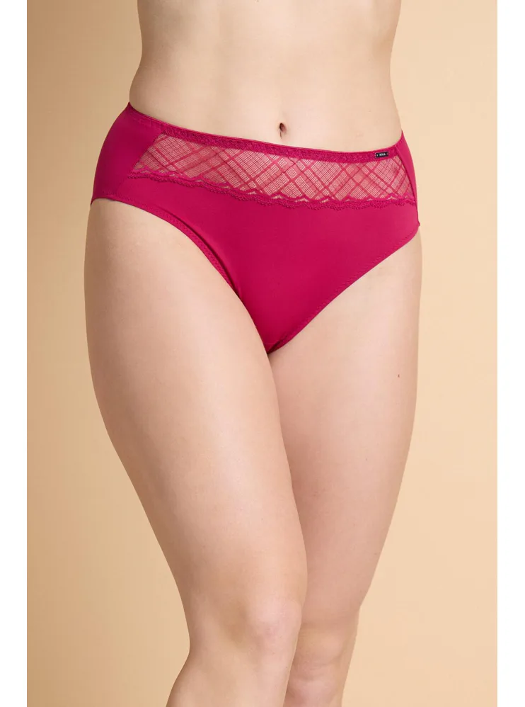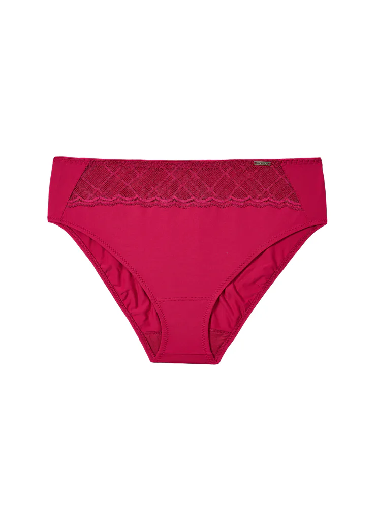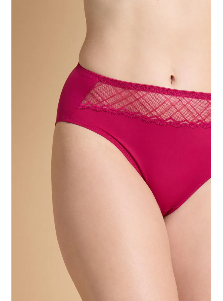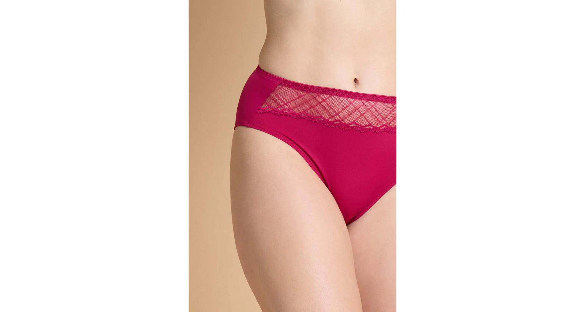 Klasické nohavičky Aurora z mikrovlákna upútajú pozornosť žiarivo karmínovou farbou a atraktívnym krajkovým prevedením. Samozrejmosťou je bavlnený klin. Začnite deň v pohodlnej spodnej bielizni. Ku klasickým nohavičkám možno zaobstarať aj podprsenku z rovnakej kolekcie. Spodnú bielizeň z limitovanej kolekcie Súznenie si zamilujete hneď pri prvom vyskúšaní.