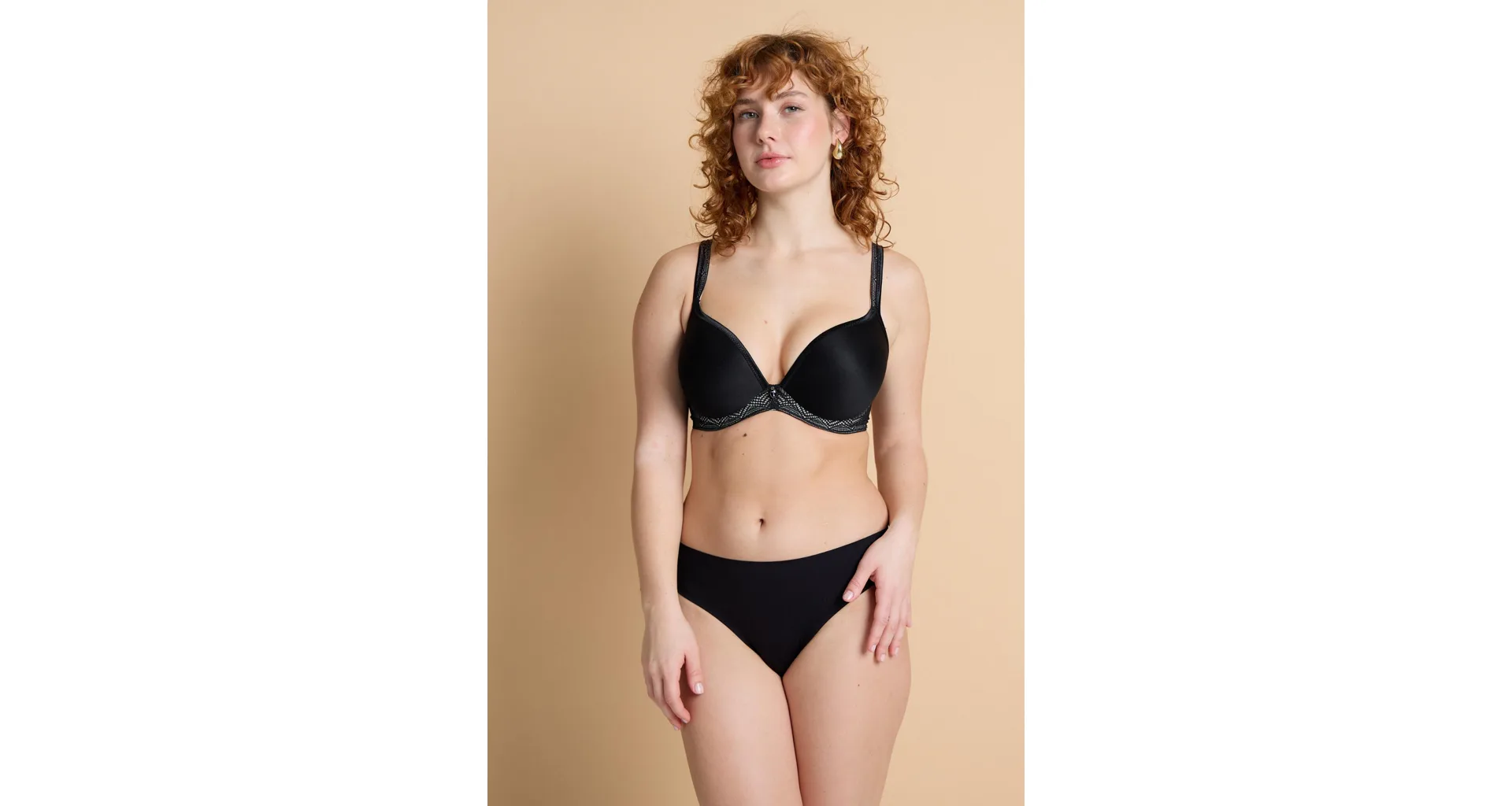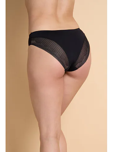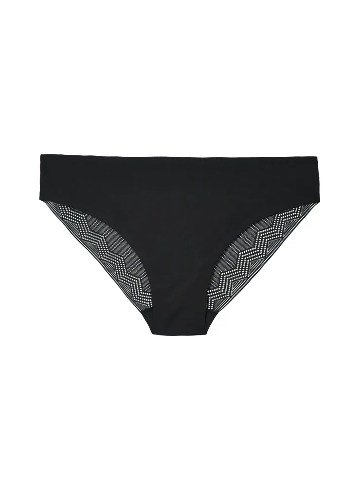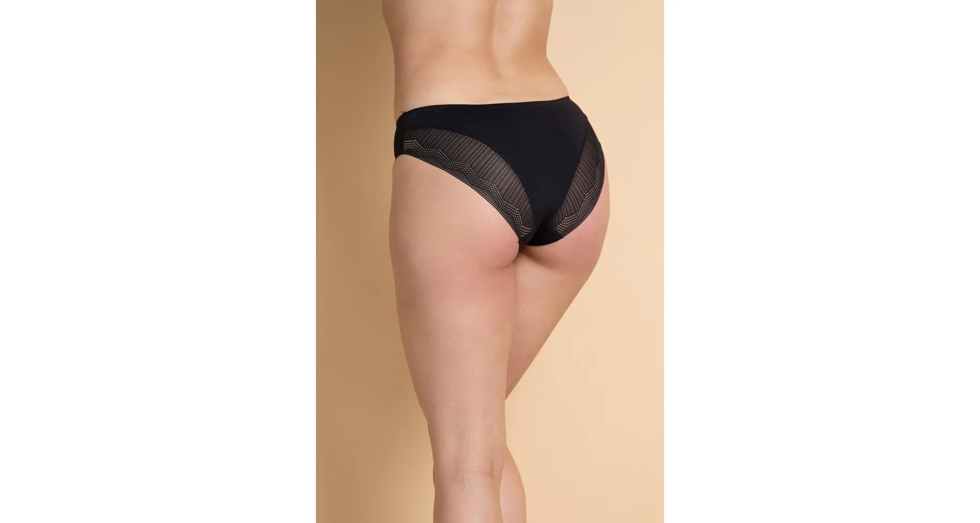 Klasický strih nohavičiek je veľmi obľúbený, pretože poskytuje maximálne pohodlie pri celodennom nosení. Nohavičky zaujmú zadným dielom, ktorý je zdobený inovatívnou čipkou s geometrickým vzorom. Pás a predný diel nohavičiek sú zakončené inovatívnou bezšvovou technológiou. Nohavičky sa nerysujú pod oblečením a majú bavlnený klin.
