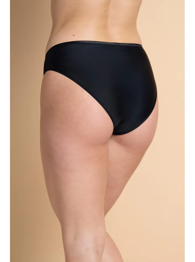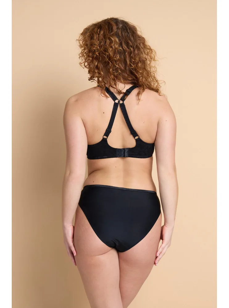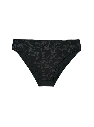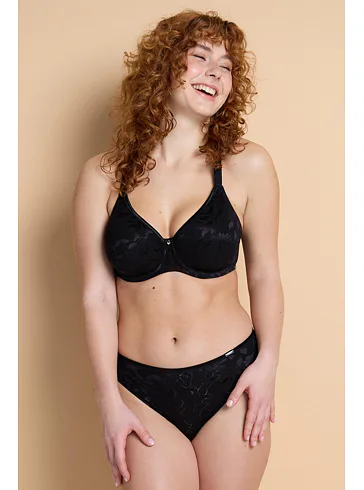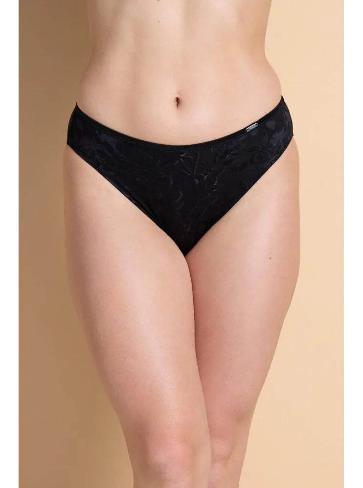 Nerobte kompromisy medzi krásou a pohodlím, vyskúšajte si u nás na predajni nohavičky v klasickom strihu. Čierne nohavičky z exkluzívneho žakárového úpletu sú príjemné na dotyk, pružné a perfektne držia tvar. Predný diel zdobí kvetinový vzor, zatiaľ čo zadný diel z úpletu z mikrovlákna je krásne hladký. K nohavičkám je možné zaobstarať aj podprsenku v obľúbenom strihu Perfect-Fit či T-Fit.