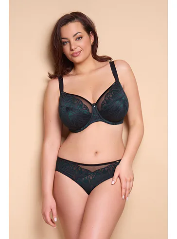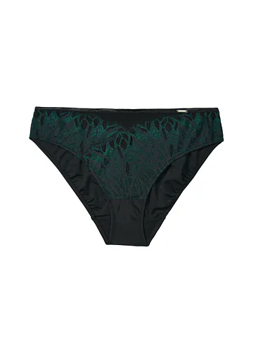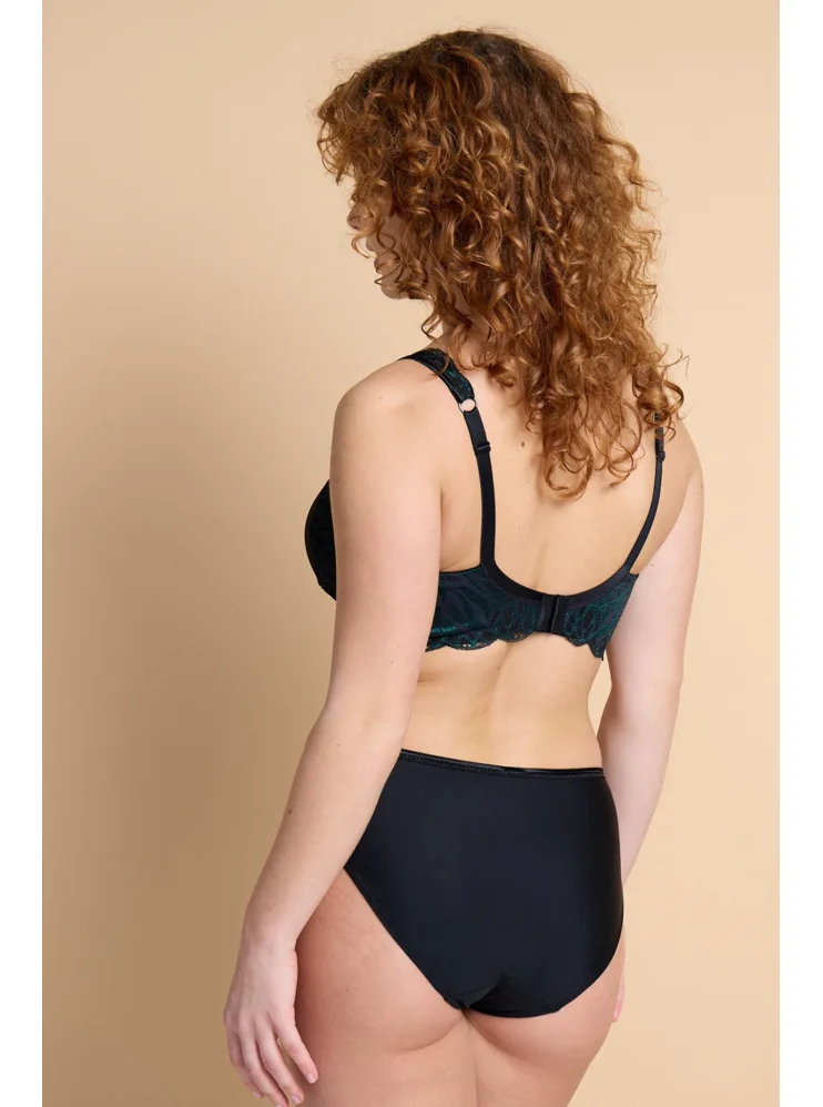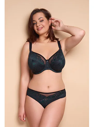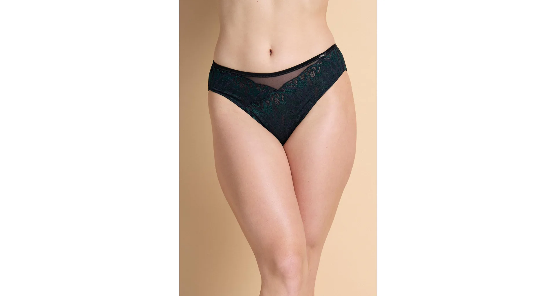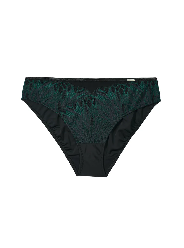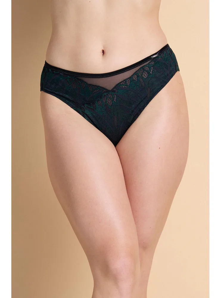Nohavičky Larissa v klasickom strihu patria medzi najobľúbenejšie dámske nohavičky. Nikde netlačia a nezarezávajú sa. Zaujmú vo svojej prednej časti krajkovým „zavinovacím“ efektom. Čierno-zelená čipka s bohatým vzorom dodáva nohavičkám romantický nádych. Začnete deň v pohodlnom a zároveň atraktívnom spodnom prádle. Ideálne na každodenné nosenie, aj na špeciálne príležitosti.
