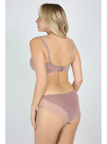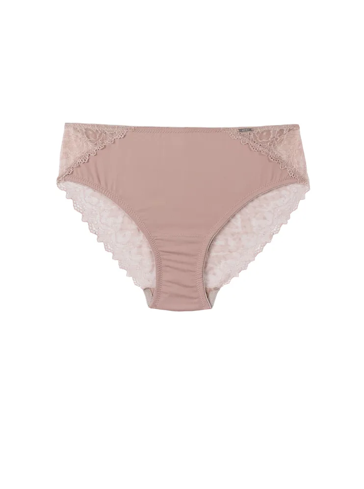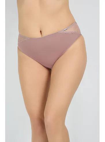 Dámske nohavičky klasického strihu DAJA podčiarknu vaše ženské krivky a vďaka širokej škále veľkostí vždy padnú, ako majú. Vyrobené sú z pohodlného úpletu av zadnej časti ich zdobí jemná čipka, ktorá prechádza do predného dielu. Nugátové nohavičky majú bavlnený klin na zaistenie maximálneho komfortu. K nohavičkám je možné zaobstarať aj podprsenku či nočnú košeľu.