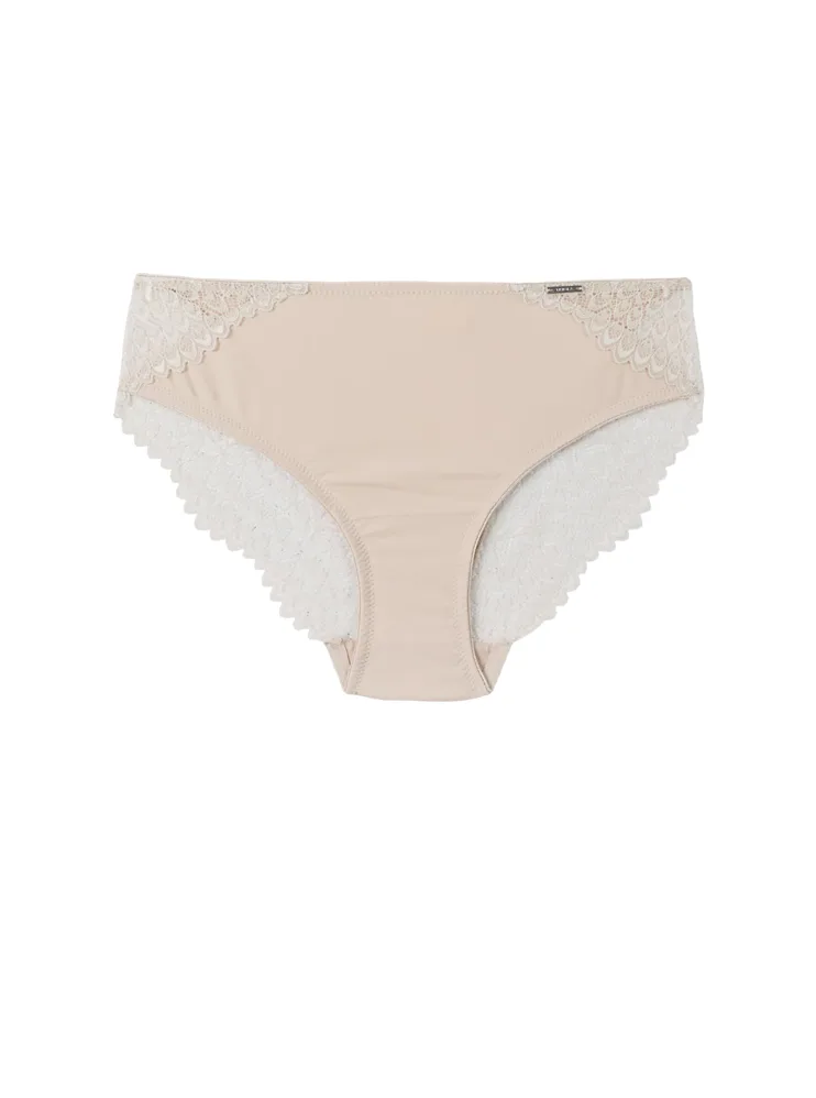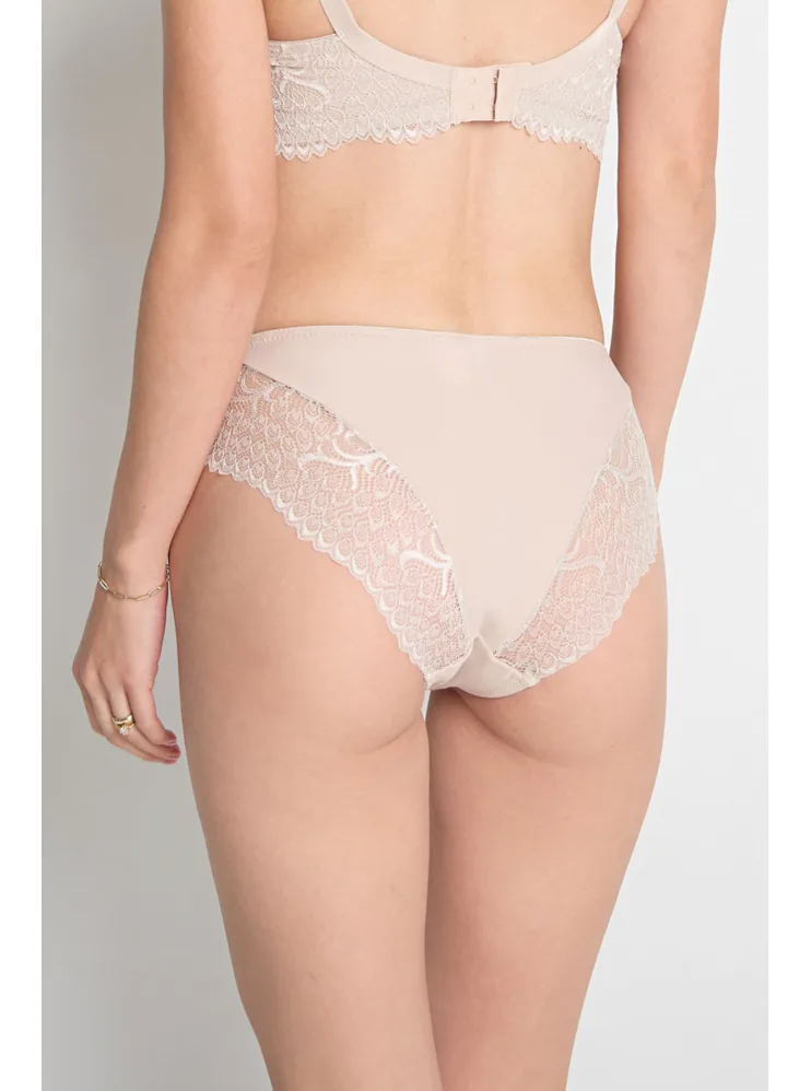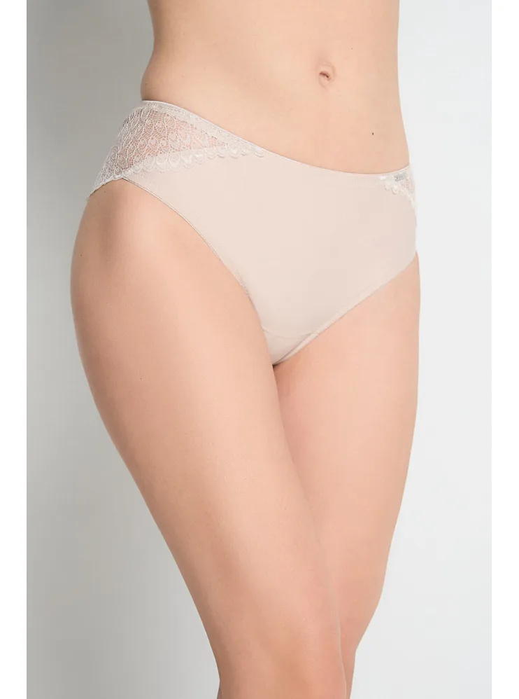 Vysoko komfortné dámske nohavičky zaujmú trendy cappuccino farbou a romantickou čipkou, ktorá sa nerysuje pod oblečením. Perfektne padnú každému typu postavy. Klasický strih nohavičiek nosia ženy všetkých vekových kategórií. Zaobstarajte si k nohavičkám aj podprsenku v cappuccino farbe a získajte tak atraktívny set spodnej bielizne.