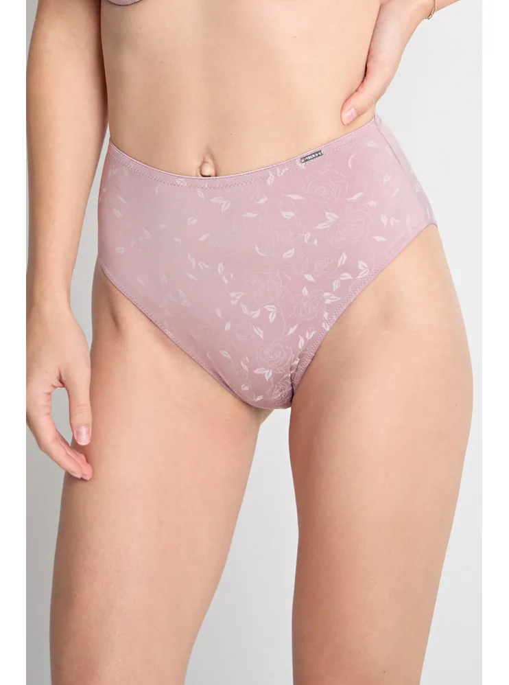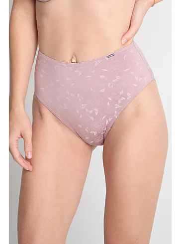 Dámske nohavičky s vysokým pásom zakryjú bruško a boky, opticky predĺžia nohy a perfektne sa prispôsobia vašim krivkám. Zaujmú ružovou farbou s fialovým nádychom a jemným kvetinovým vzorom. Doprajte si komfort vo vysokých nohavičkách, ktoré sú ideálne na každodenné nosenie.