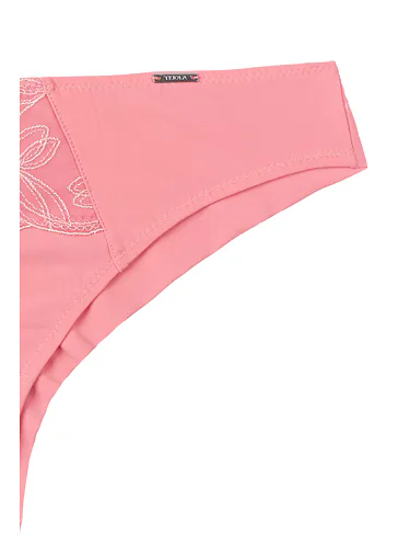 Nohavičky brazílky vykúzlia sexy okrúhly zadoček a opticky predĺžia nohy. Zvýraznia vaše krivky a dodajú vám sebavedomie. Zaujmú výraznou lososovou farbou a jemnou výšivkou v prednej časti. Vďaka zadnému dielu s légami sa nohavičky nezarezávajú. Zaobstarajte si atraktívne nohavičky, vhodné ako na každodenné nosenie, tak aj špeciálne príležitosti.