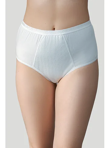 Vyššie bavlnené nohavičky v krémovej farbe poskytujú väčšiu oporu, opticky zoštíhlujú oblasť brucha a predlžujú nohy. Zosilnený klin s froté vložkou dobre absorbuje vlhkosť a zvyšuje pohodlie pri celodennom nosení. Chrbát je hladký, ideálny aj pod priliehavým oblečením. Vyskúšajte si v našom obchode nohavičky, ktoré budú vyhovovať vašim potrebám a preferenciám. Bavlnené dámske nohavičky vynikajú vysokou odolnosťou a nenáročnou údržbou. Nohavičky s vyšším pásom sú vhodné aj pre plné tvary až do veľkosti 2XL.