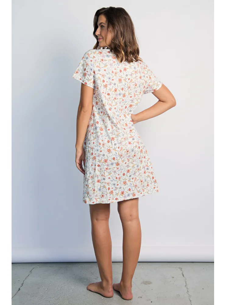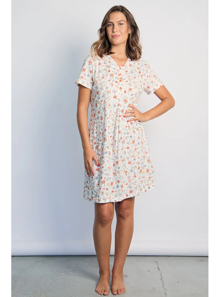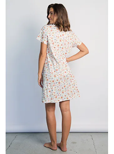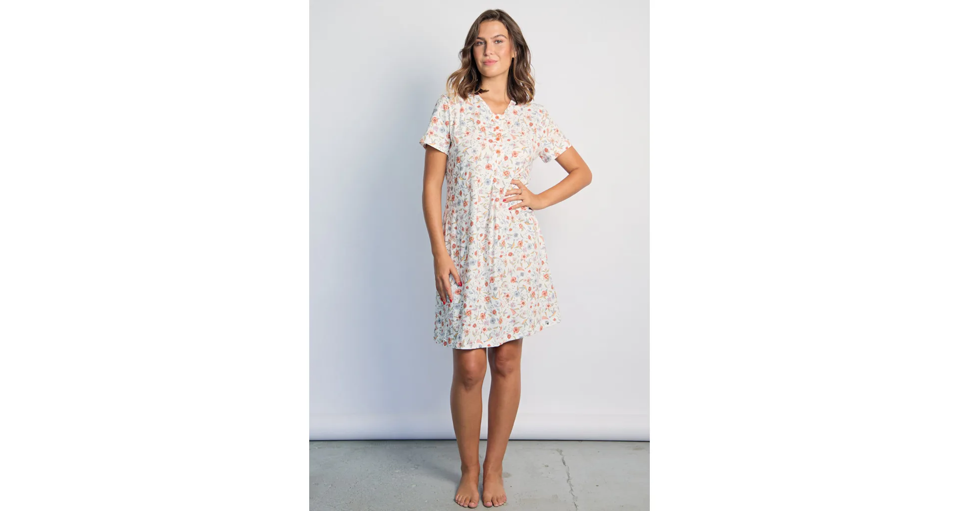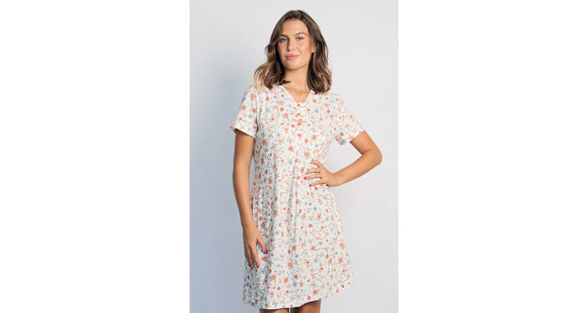Nočná dámska košeľa z príjemného bavlneného úpletu vám zaistí pokojný spánok. Košeľa s kvetinovým vzorom má voľný strih do A, vďaka ktorému je vhodná pre všetky typy postáv.