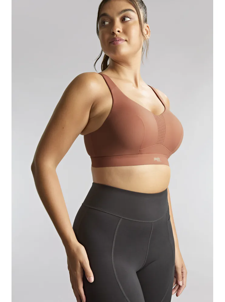 Pevne fixuje prsia a znižuje ich pohyblivosť, tým zabraňuje povoleniu prsného tkaniva. Podložené posuvné ramienka je možné zapnúť klasicky alebo do kríža. Kostice v silikónovom puzdre zaisťujú maximálne pohodlie a vystužené zapínanie na háčiky sa nachádza vzadu. Podprsenka Panache vás pri športe vždy podrží.