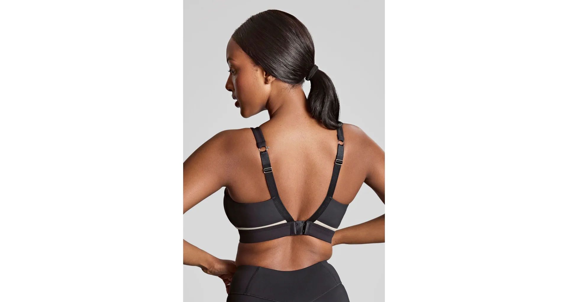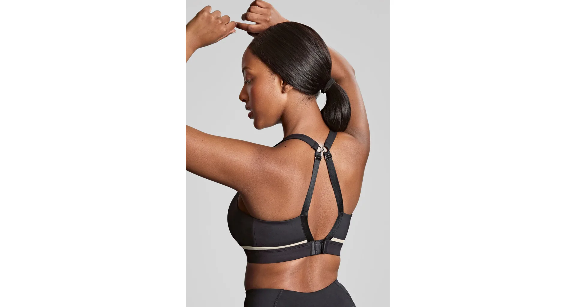 Podprsenka bez kostíc poprsie pevne zafixuje a zníži jeho pohyblivosť. Čierna podprsenka s béžovým detailom a mäkko podloženými ramienkami vás nebude nikde tlačiť. Zapínanie má vzadu na tri háčiky s tromi polohami stiahnutia a ramienka je možné zopnúť aj do kríža. Ľahký a vysoko priedušný materiál z mikrovlákien účinne odvádza vlhkosť od pokožky, zaisťuje maximálny komfort a predchádza podráždeniu. Podprsenka má špeciálne ploché švy, vďaka ktorým sa nerysuje