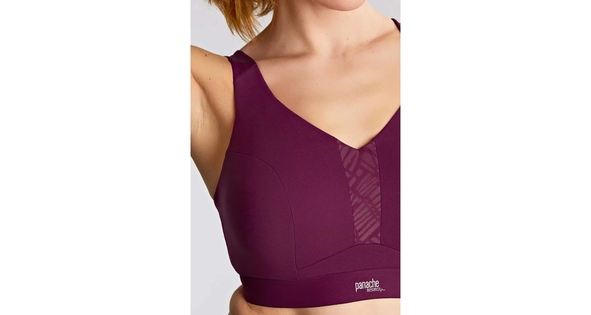 Pri športe je dôležité nosiť kvalitnú športovú podprsenku, která vám zaistí pevnú oporu. Športová podprsenka Panache Sportznižuje pohyblivosť pŕs. a pomáha predchádzať bolesti chrbta. Na ramienkach se nachádza háčik pre úpravu ich tvaru a zapínanie má klasicky vzadu.