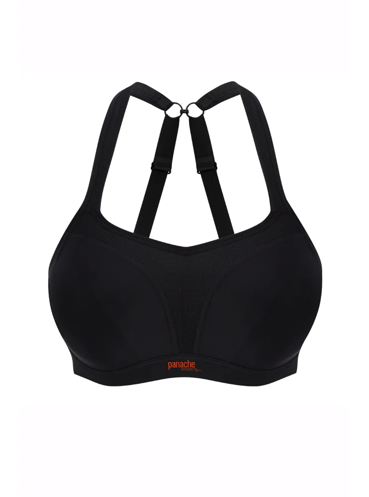 Podprsenka Panache v čiernej farbe poskytuje najvyššiu oporu pri náročných športových aktivitách. Vyskúšajte jednu z najpopulárnejších športových podprseniek na svete a chráňte svoje prsia pri športe.