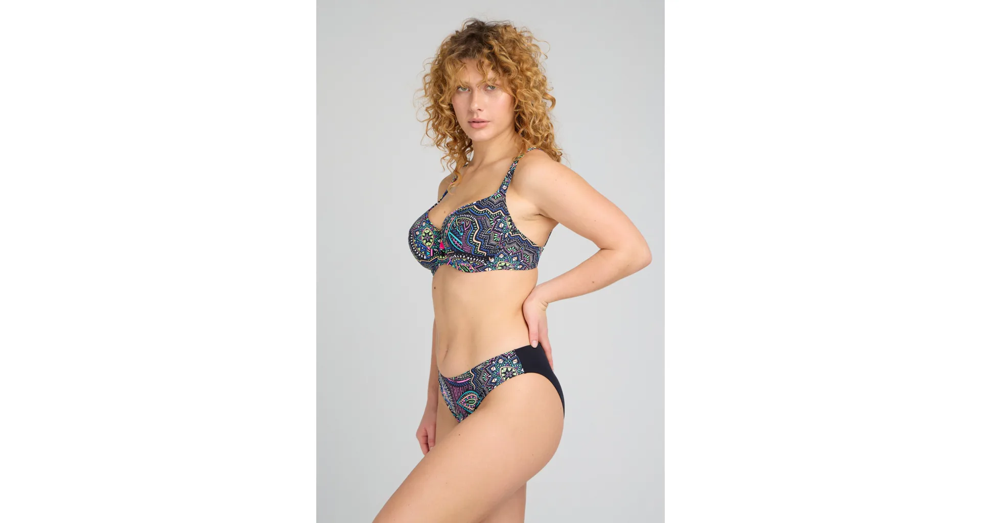 Objavte dokonalú kombináciu pohodlia, štýlu a elegancie. Plavková podprsenka s boho vzorom zaistí zvodný a prirodzene okrúhly dekolt. Užite si letné dni v dobre padnúcich plavkách Triola.