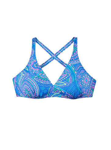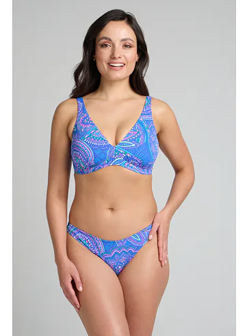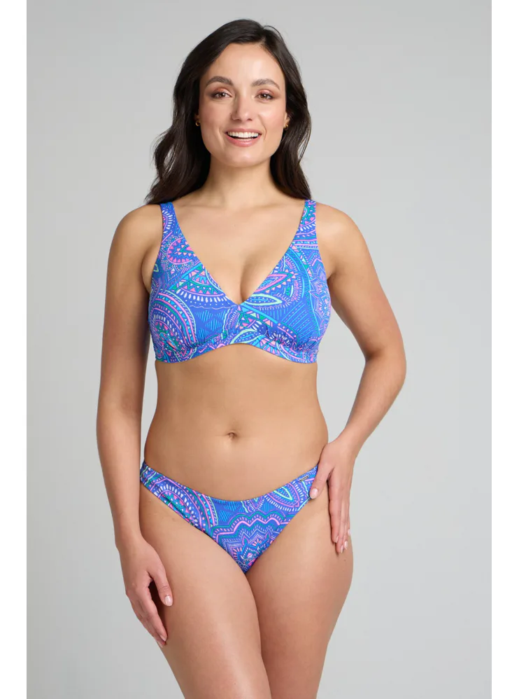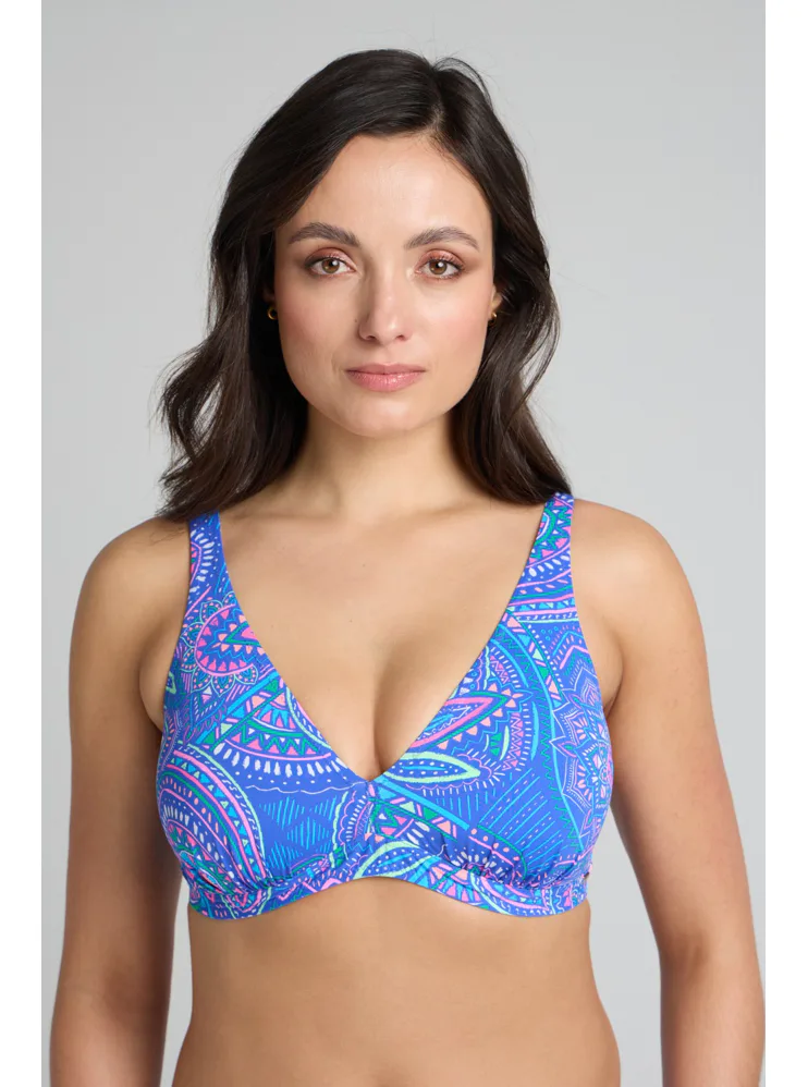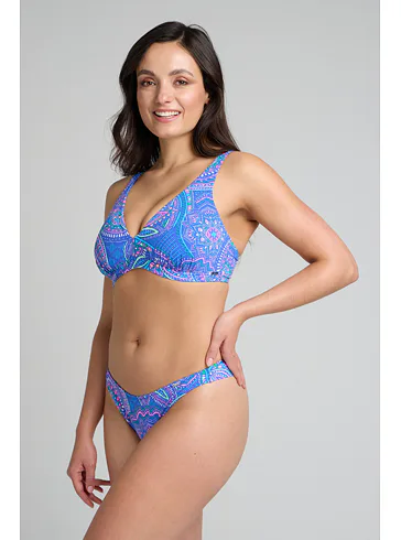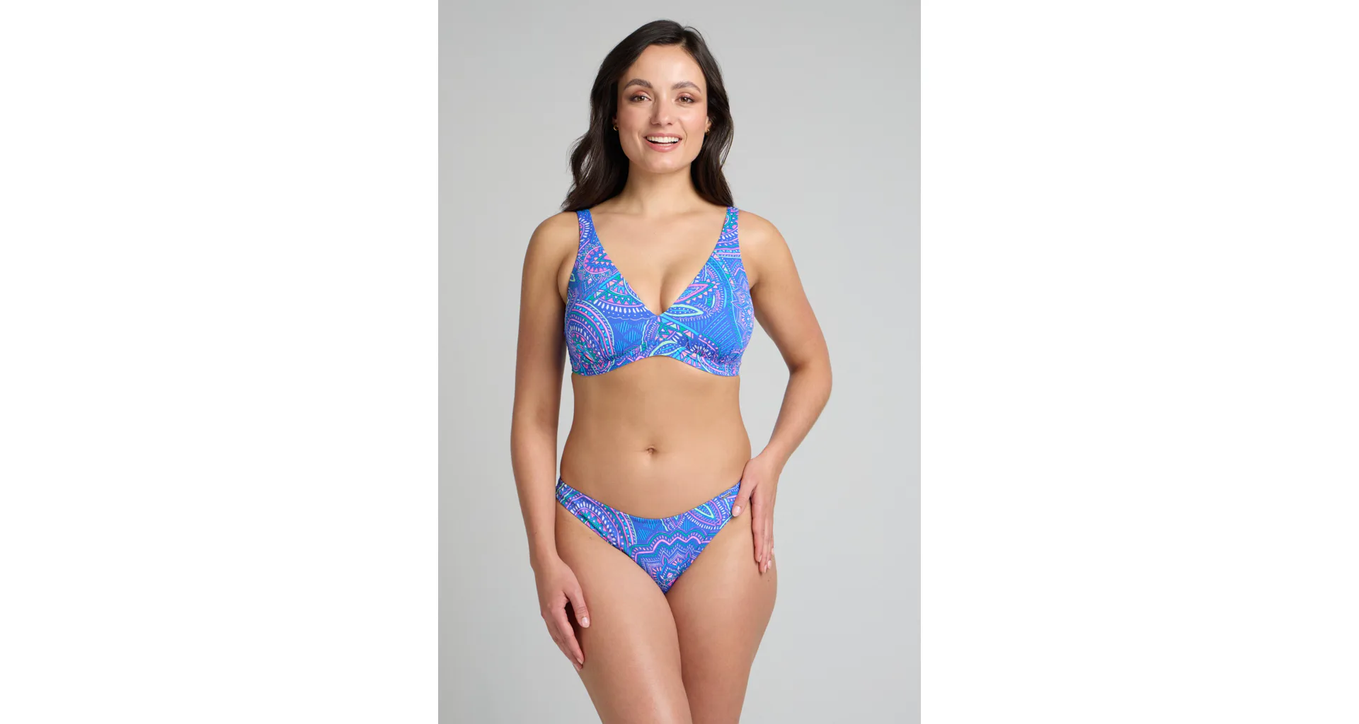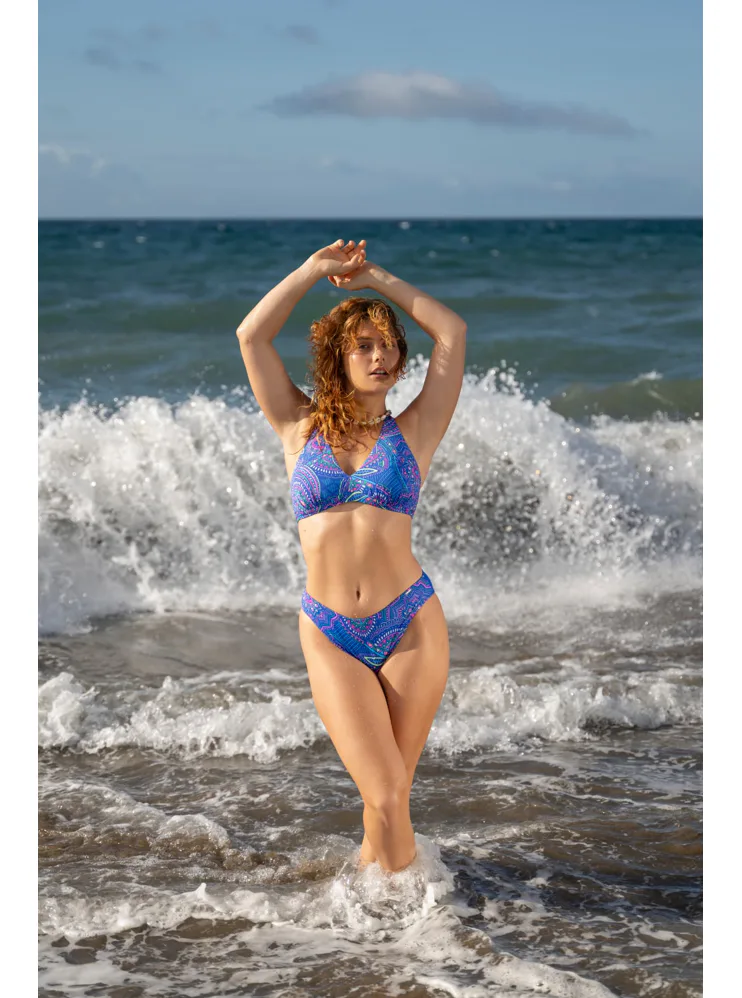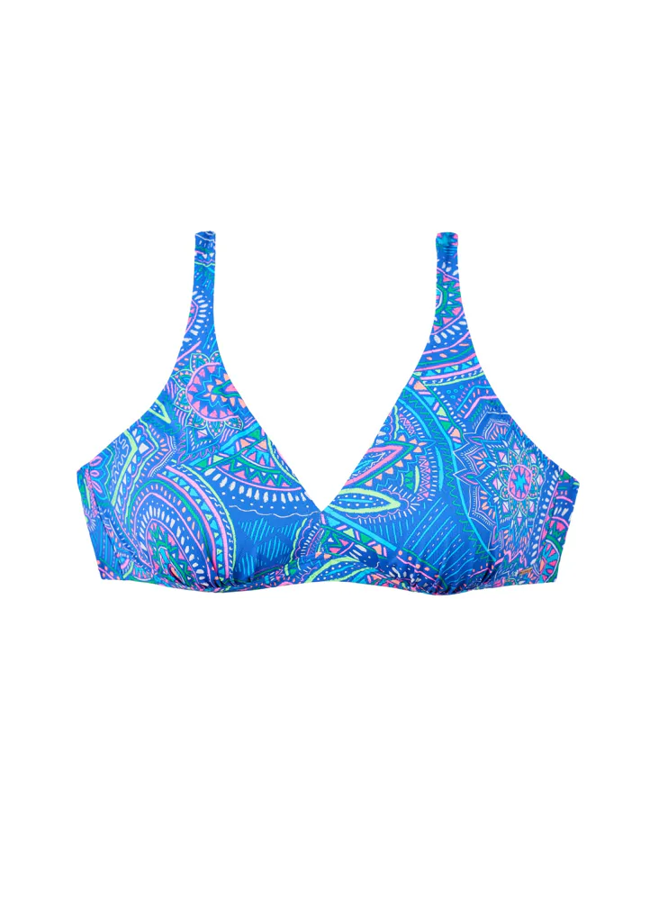 Vyskúšajte nový strih plavkovej podprsenky, ktorá zaujme na prvý pohľad sýto modrou farbou s boho vzorom. Tenko vystužená plavková podprsenka bez kostíc zaistí maximálne pohodlie, nikde netlačí a nezarezáva sa. Nastaviteľné variabilné ramienka možno zopnúť klasicky, do kríža či za krkom. K podprsenke si môžete zaobstarať plavkové klasické nohavičky, brazílky či vyššie nohavičky s nastaviteľnou výškou pása. Užite si teplé letné dni na maximum v plavkách Triola.