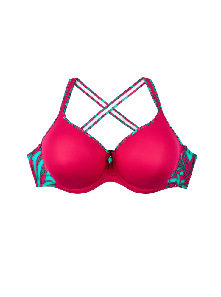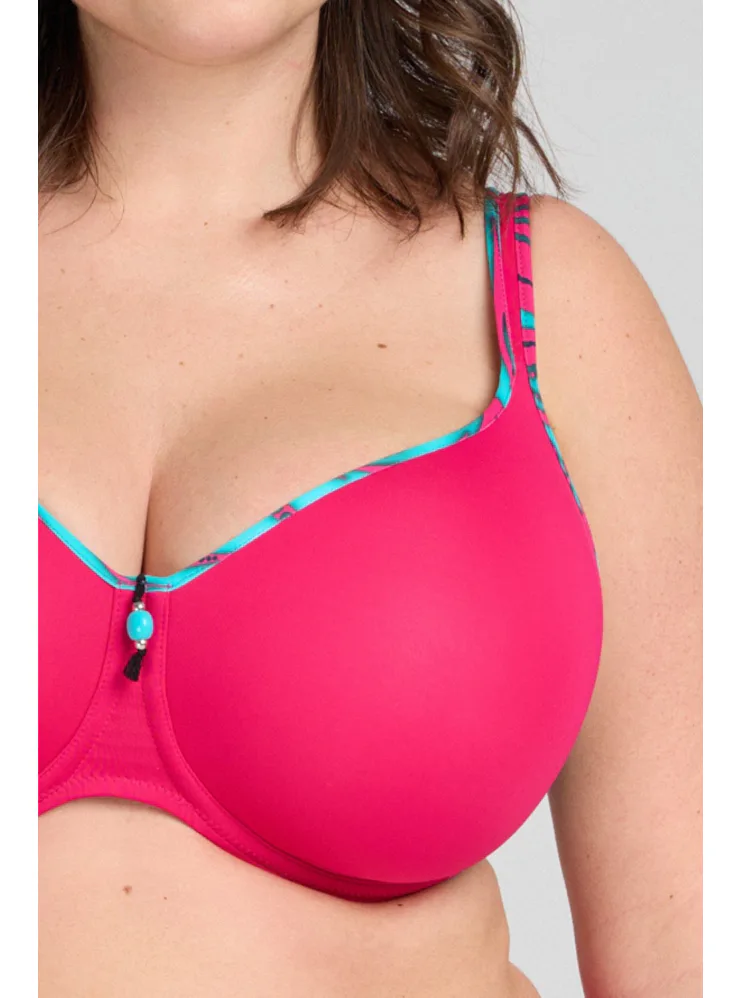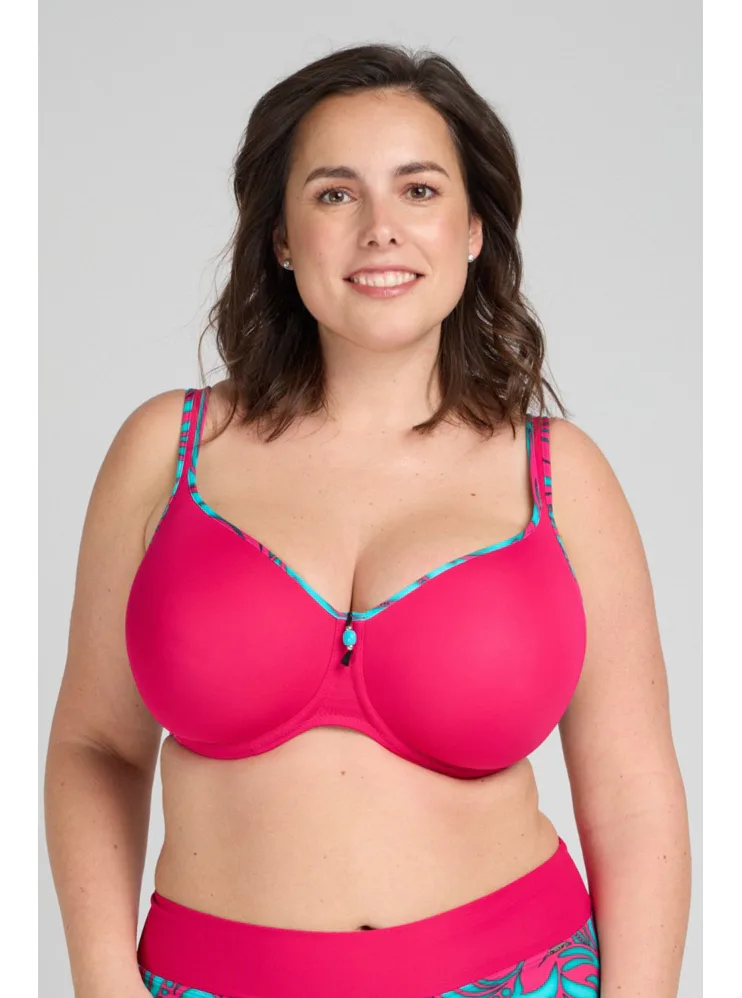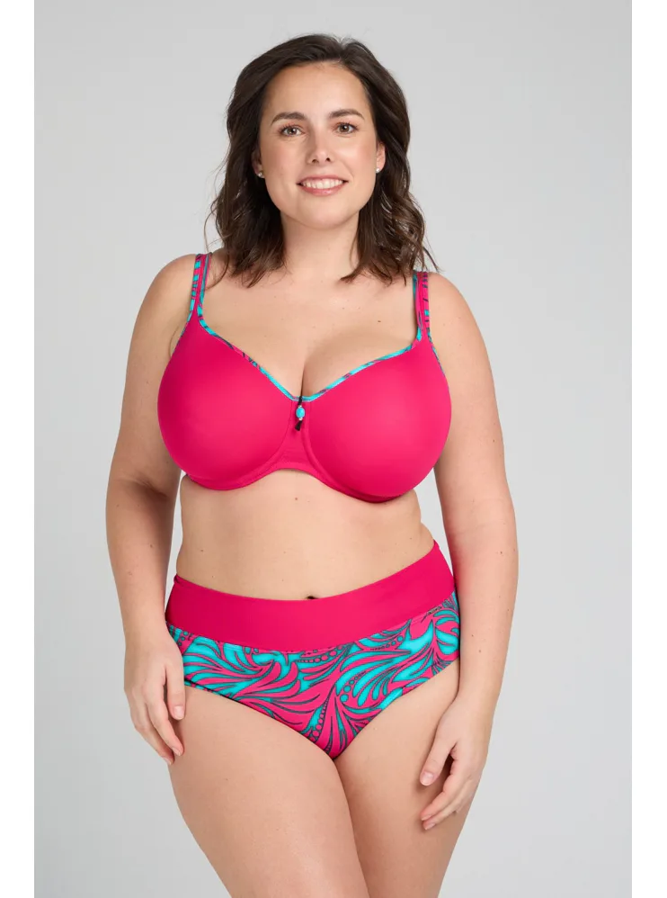 Plavková podprsenka Triola vás uchváti tropickou potlačou vo fuchsiovej a tyrkysovej farbe. Zaobstarajte si štýlové plavky z novej kolekcie, v ktorých sa budete cítiť skvele.