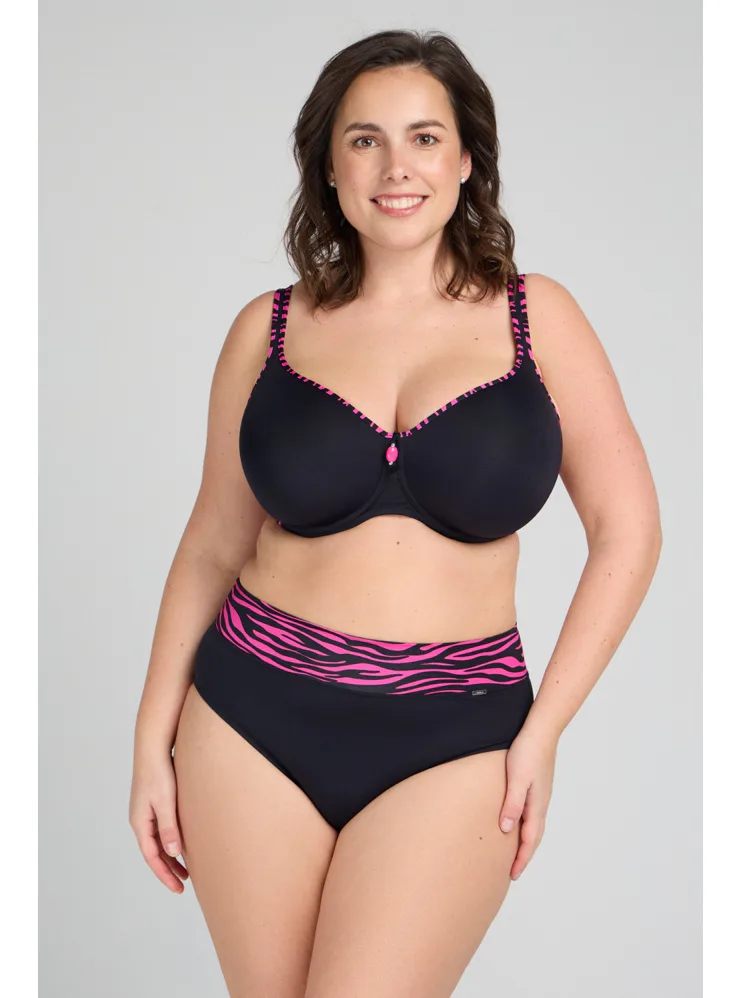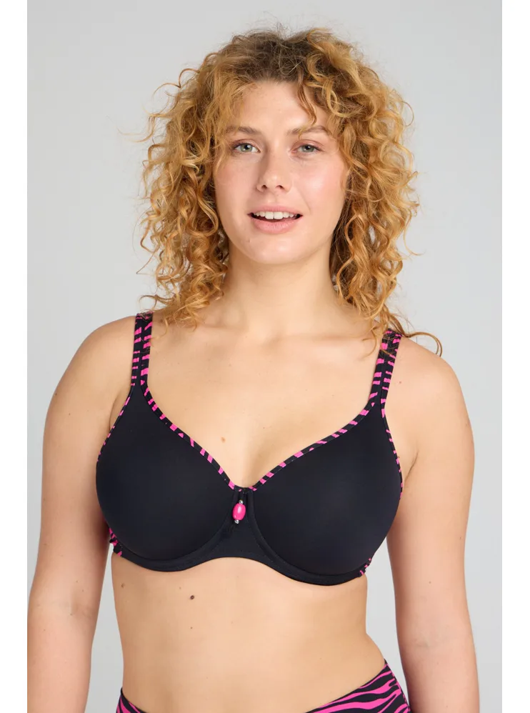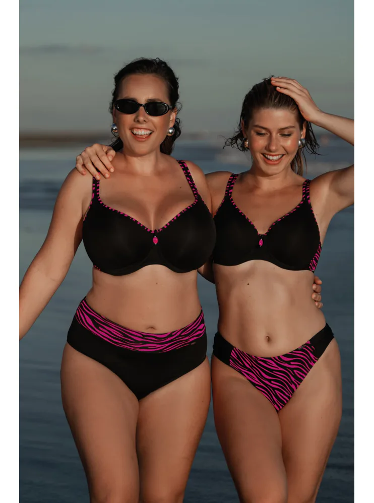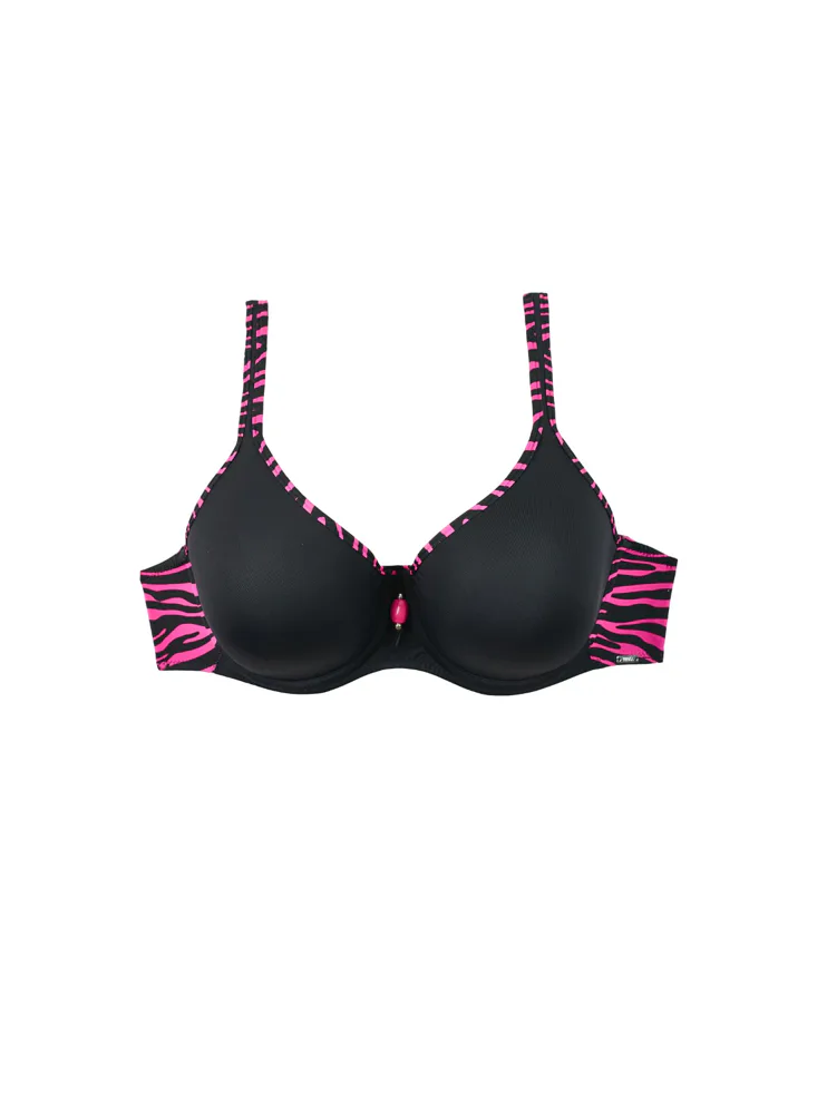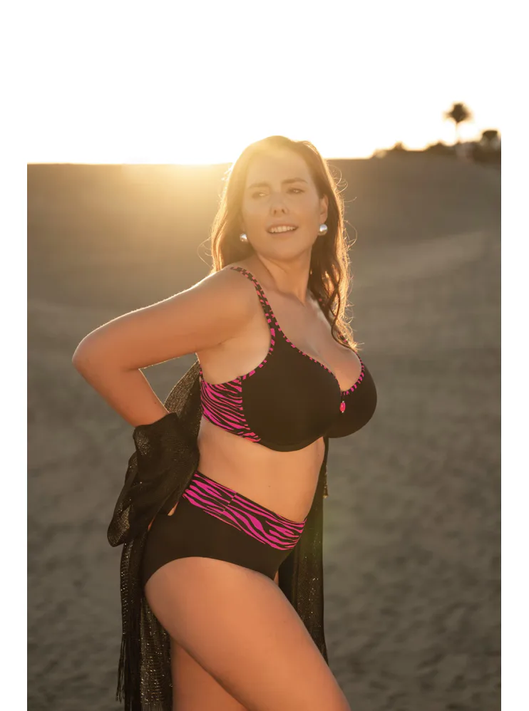 Bezšvová plavková podprsenka perfektne prilieha k telu a nijako neobmedzuje v pohybe. Má tenko vystužené košíčky s kosticami, ktoré poskytnú poprsiu potrebnú oporu a zaisťujú pohodlné nosenie. Podprsenka upúta pozornosť zebrím vzorom. Nastaviteľné variabilné ramienka je možné zapínať klasicky, do kríža či za krkom. Plavkovú podprsenku obstaráte vo veľkosti B-L. Zaobstarajte si plavky Rosari a staňte sa kráľovnou pláže.