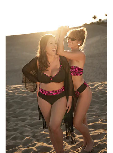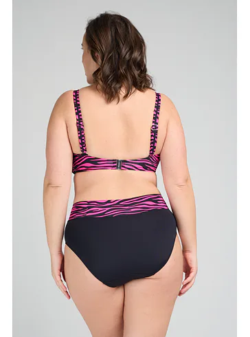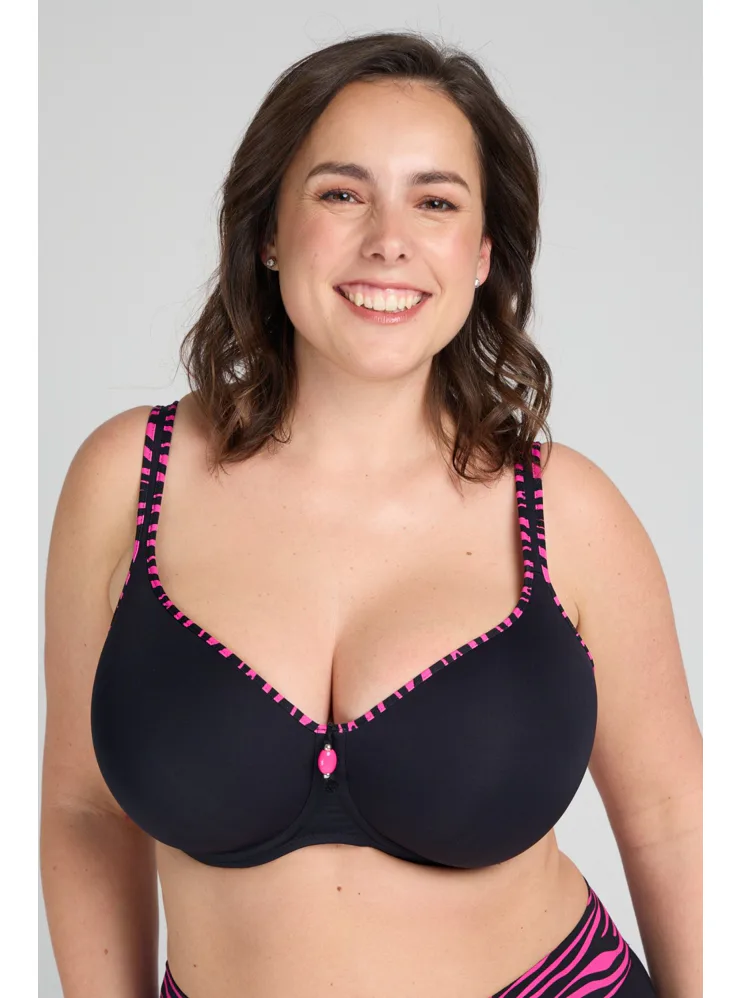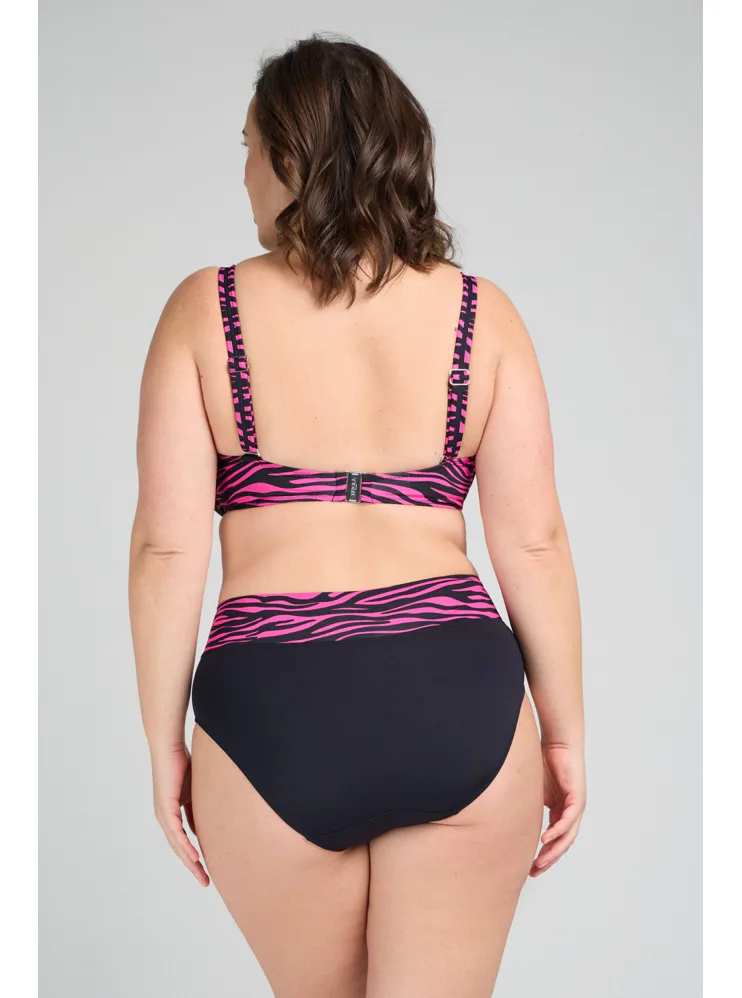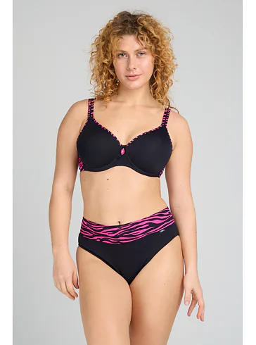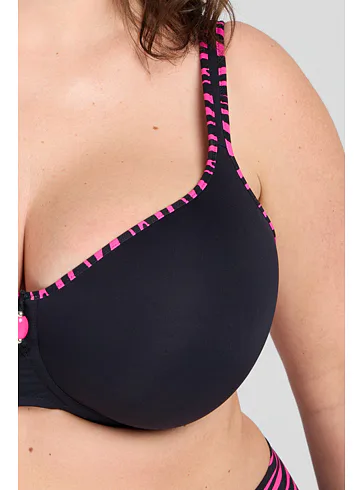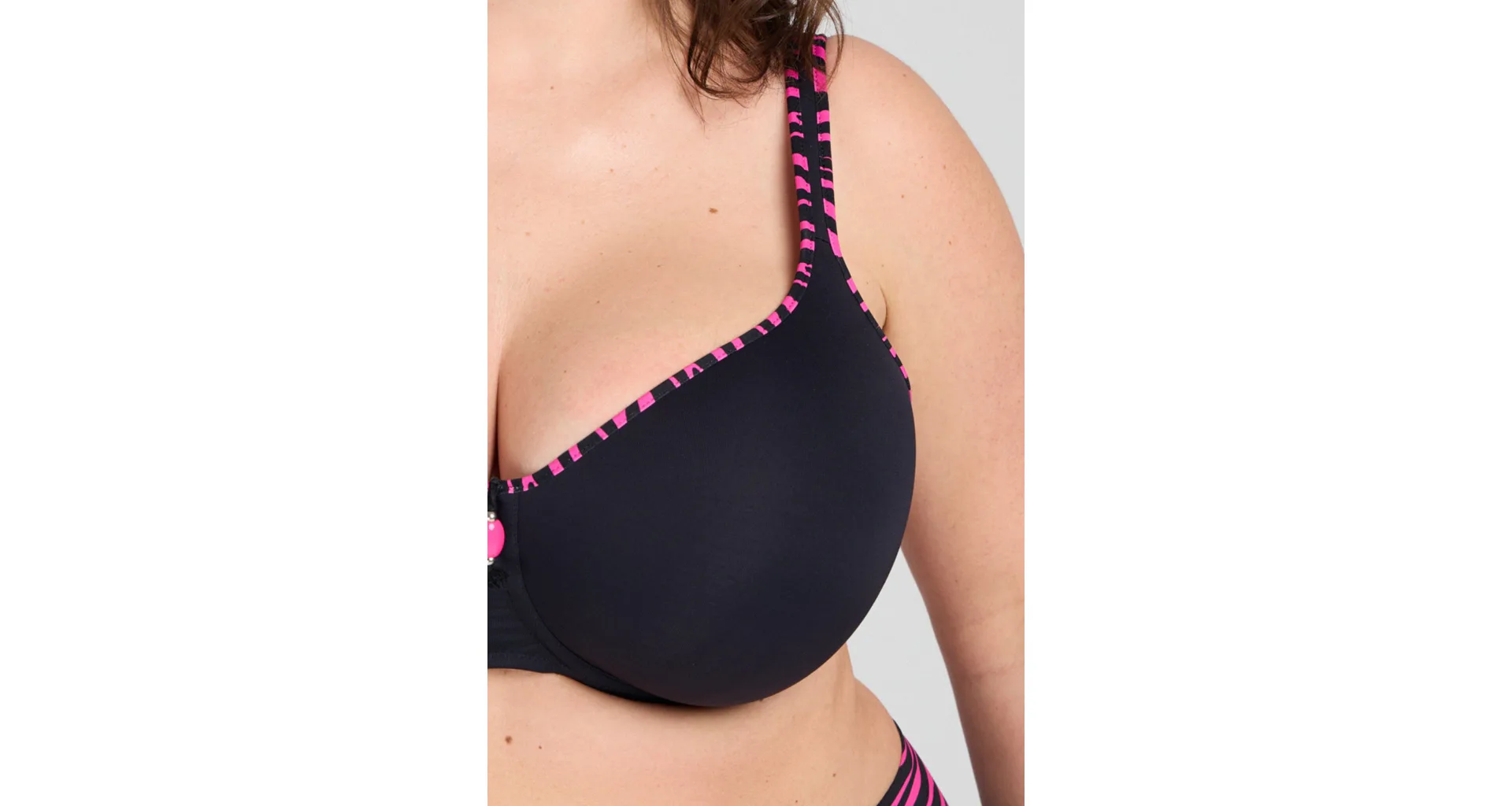 Bezšvová plavková podprsenka perfektne prilieha k telu a nijako neobmedzuje v pohybe. Má tenko vystužené košíčky s kosticami, ktoré poskytnú poprsiu potrebnú oporu a zaisťujú pohodlné nosenie. Podprsenka upúta pozornosť zebrím vzorom. Nastaviteľné variabilné ramienka je možné zapínať klasicky, do kríža či za krkom. Plavkovú podprsenku obstaráte vo veľkosti B-L. Zaobstarajte si plavky Rosari a staňte sa kráľovnou pláže.