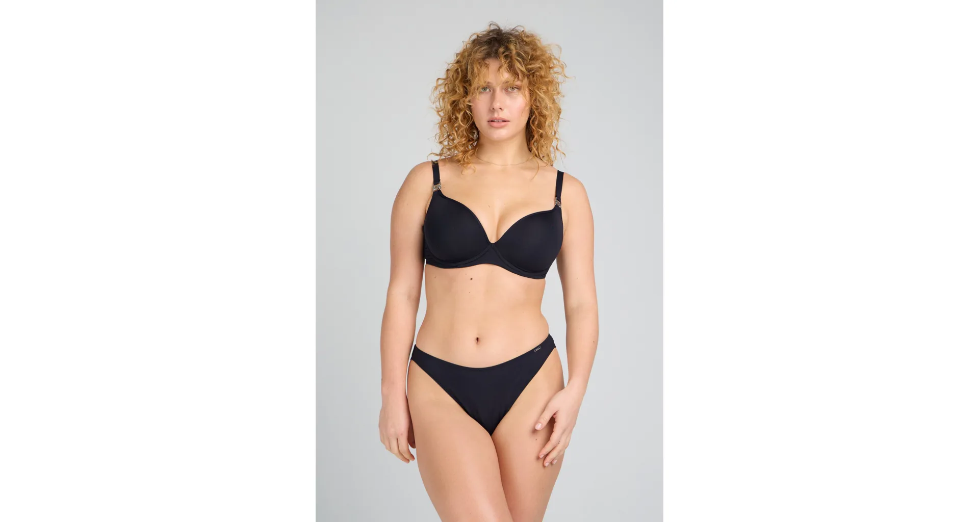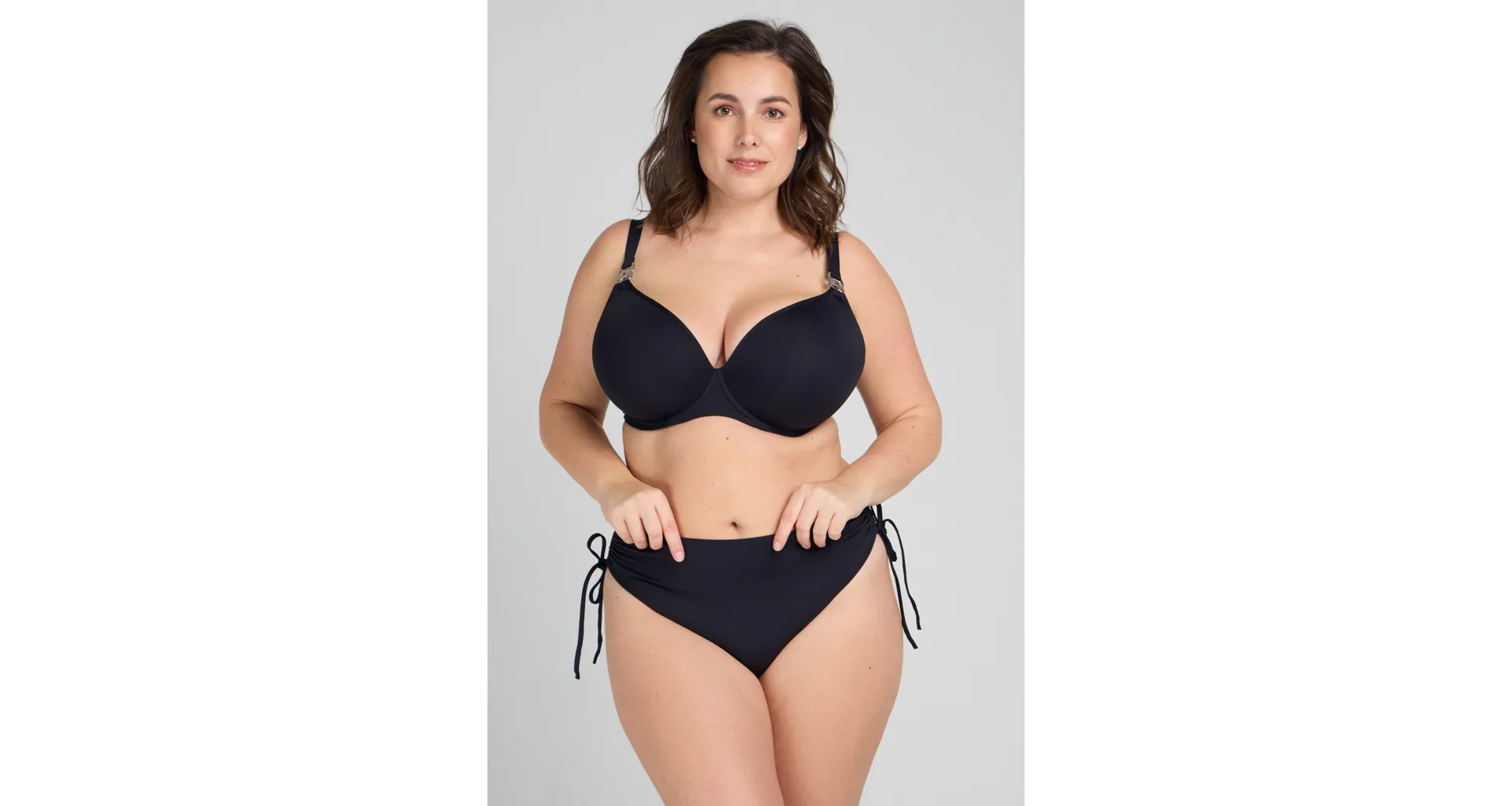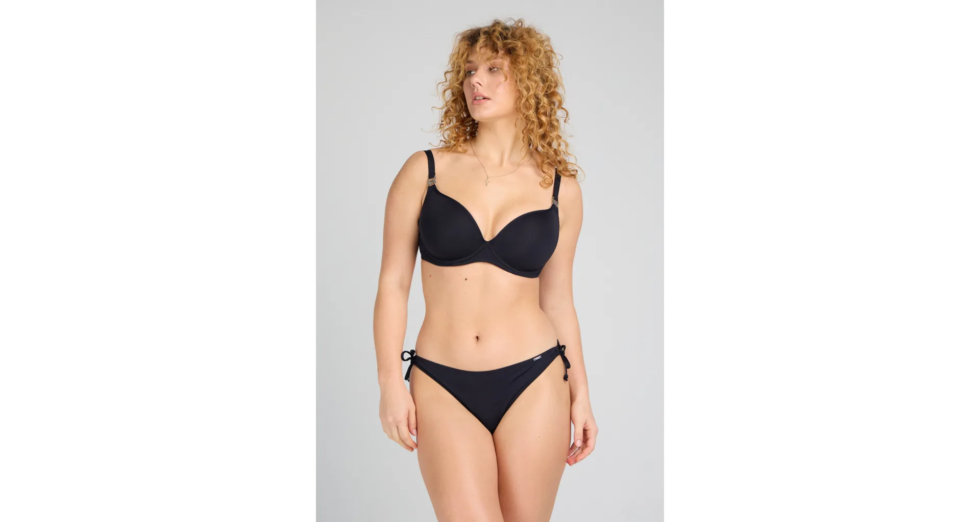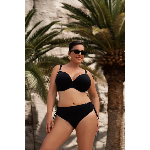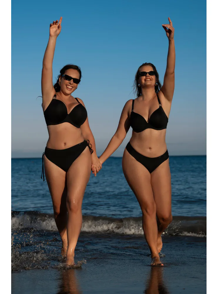 Bezošvá čierna plavková podprsenka Fancy má lepené pohodlné ramienka s inovovanými posunovačmi a možnosťou zopnúť klasicky, za krkom či do kríža. Podprsenka v strihu Top-Fit poprsie zafixuje na strede a vykúzli neodolateľný dekolt. Zdobia ju elegantné kovové spony. Získajte dokonalé bronzové opálenie v dvojdielnych plavkách Triola.