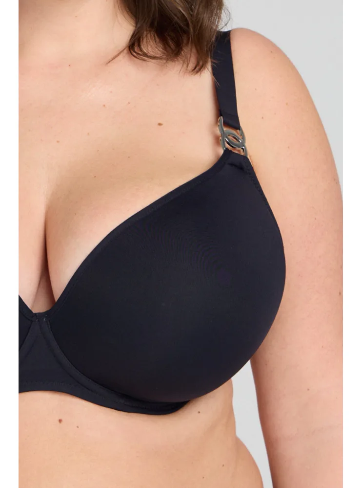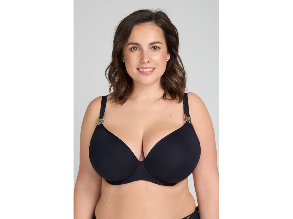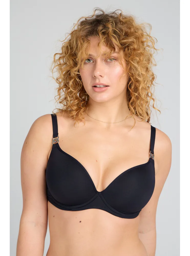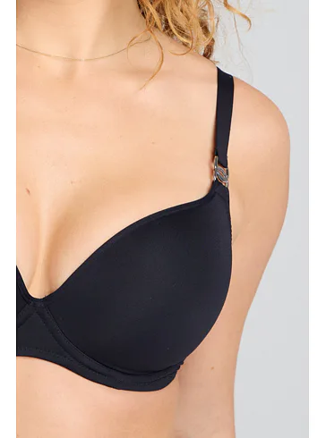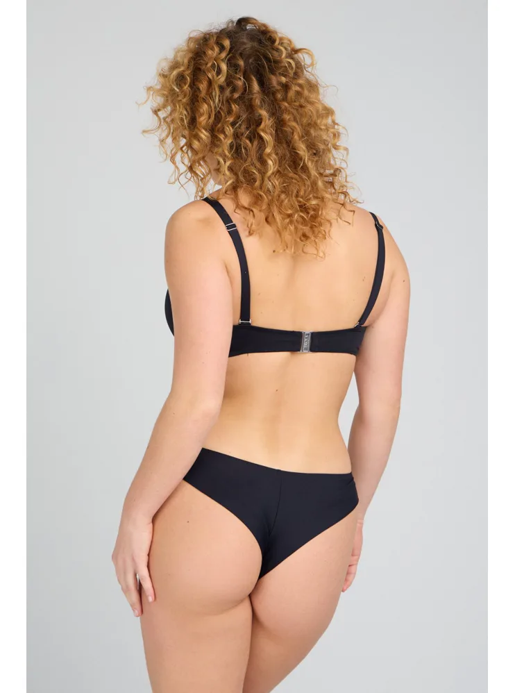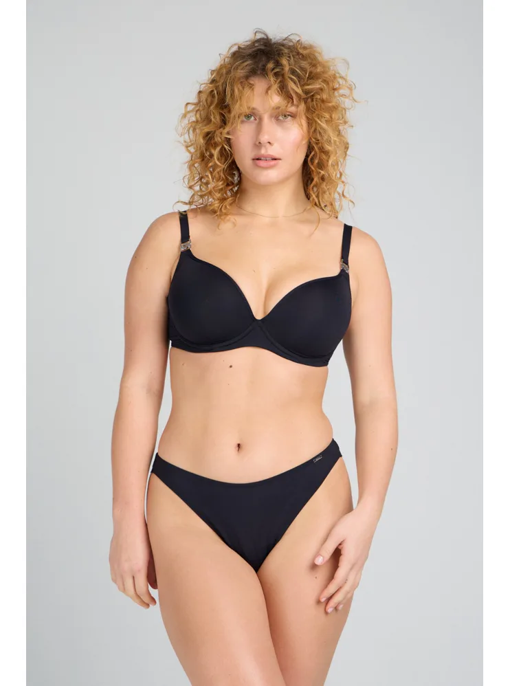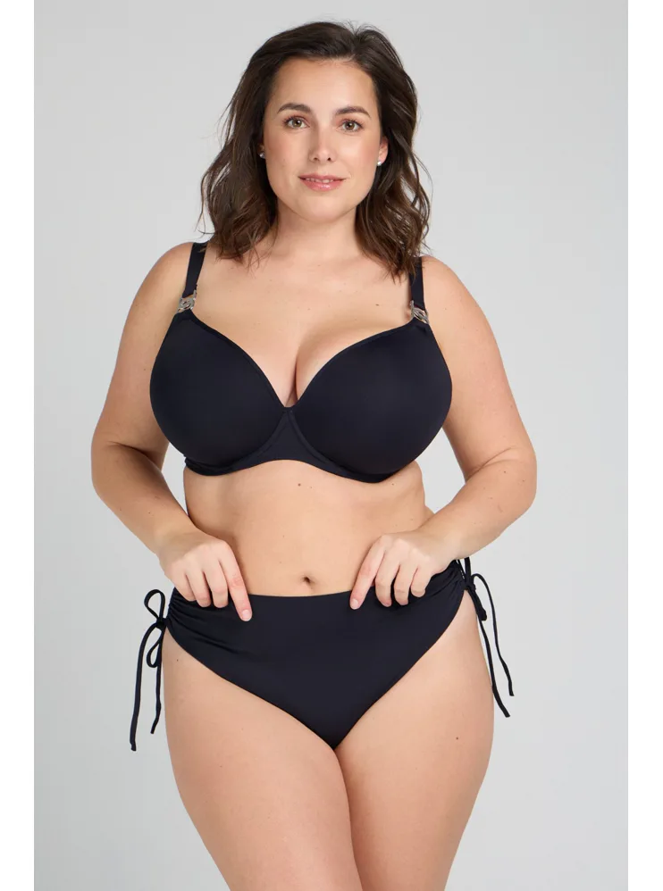 Bezošvá čierna plavková podprsenka Fancy má lepené pohodlné ramienka s inovovanými posunovačmi a možnosťou zopnúť klasicky, za krkom či do kríža. Podprsenka v strihu Top-Fit poprsie zafixuje na strede a vykúzli neodolateľný dekolt. Zdobia ju elegantné kovové spony. Získajte dokonalé bronzové opálenie v dvojdielnych plavkách Triola.