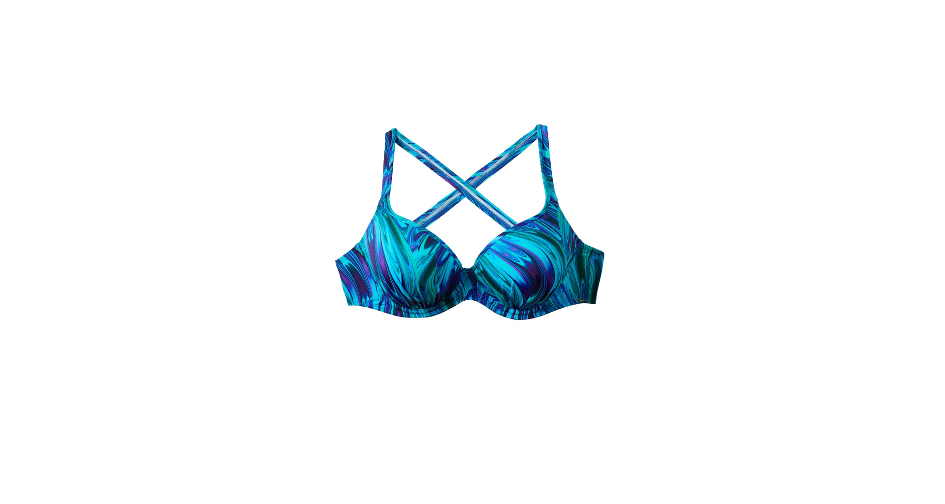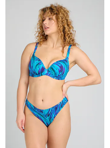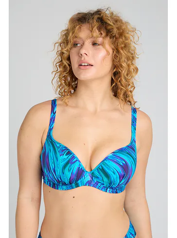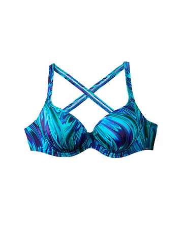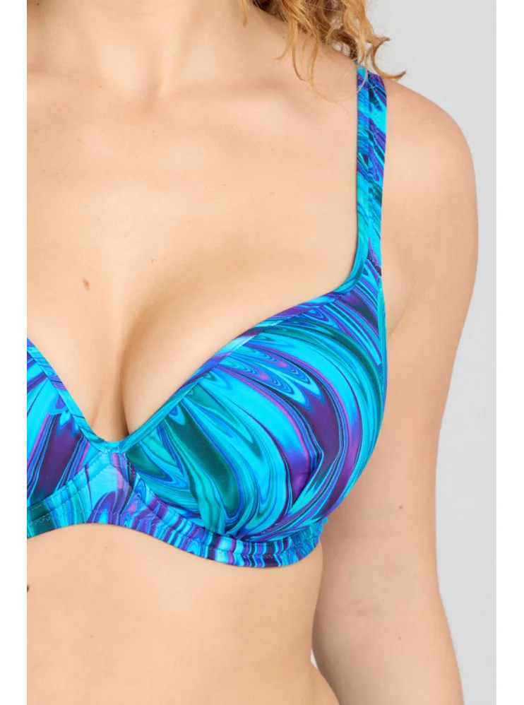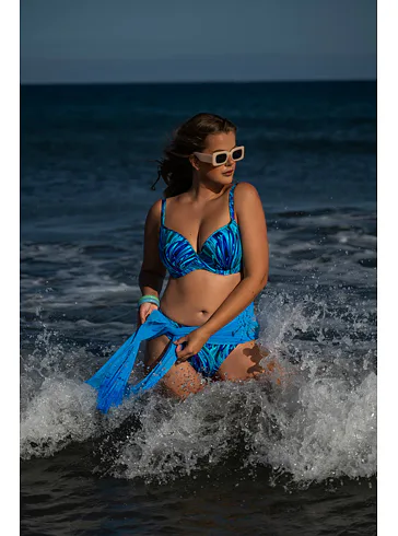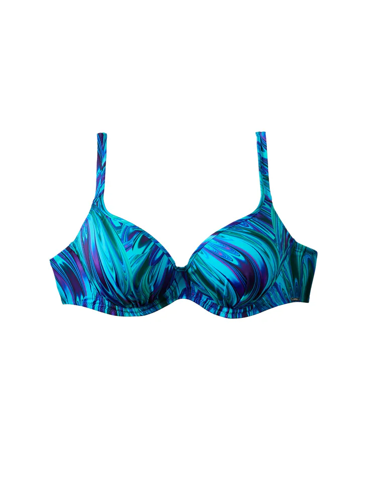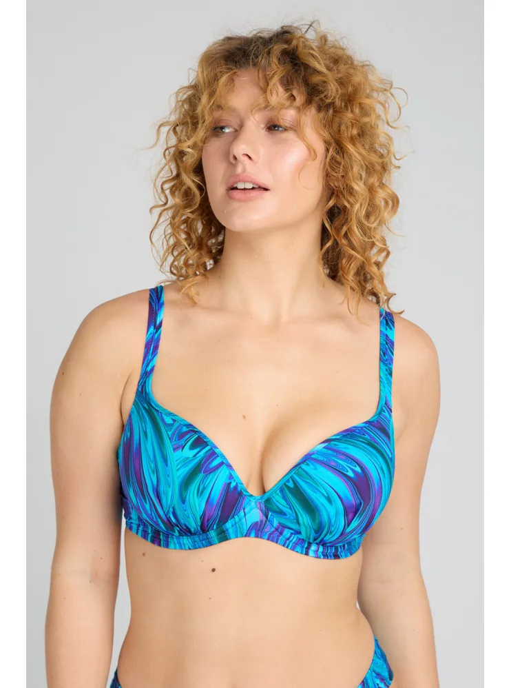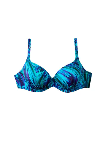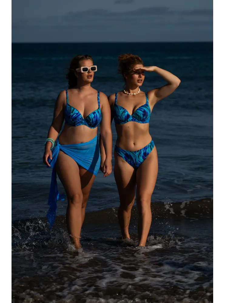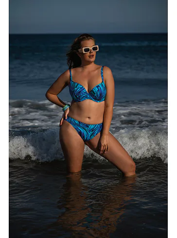 Tenko vystužená plavková podprsenka Aquamarin s kosticami v strihu Top-Fit poskytne potrebnú oporu a vďaka nízkemu stredu vytvorí hlboký dekolt. Jemné riasenie zvýrazní ženské krivky. Zaujme modrými a tyrkysovými tónmi pripomínajúce morské vlny. Nastaviteľné ramienka sú variabilné a možno ich zapínať do kríža, klasicky alebo zaviazať za krkom. Podprsenka je dostupná až do veľkosti H, možno k nej zaobstarať aj obľúbené klasické nohavičky či atraktívne brazilky a mať tak kompletný set dvojdielnych plaviek.