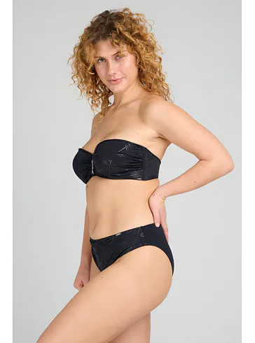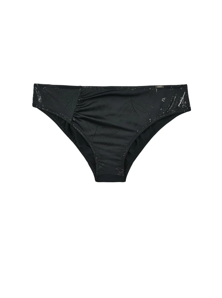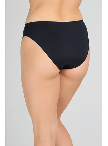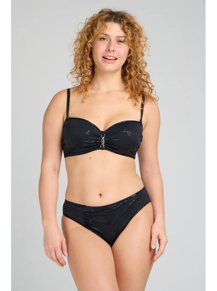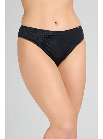 Dámske plavkové klasické nohavičky Stellar podčiarkujú prirodzené krivky tela a pôsobia veľmi žensky a zvodne. Zaujmú elegantnou čiernou farbou a jemným riasením na prednej strane, ktoré opticky zoštíhlia postavu. Užite si letné dni na maximum v pohodlných plavkách od českej značky Triola.