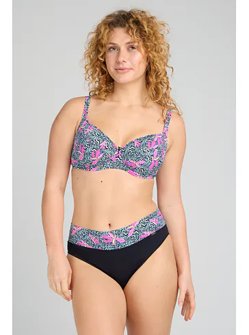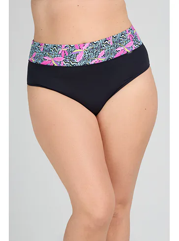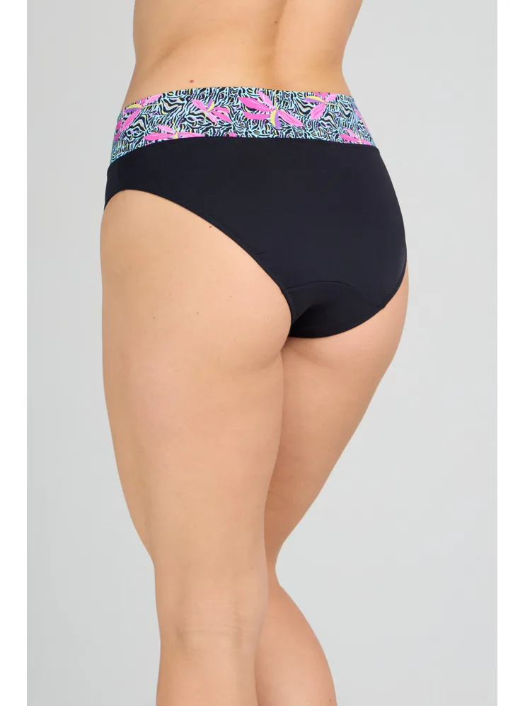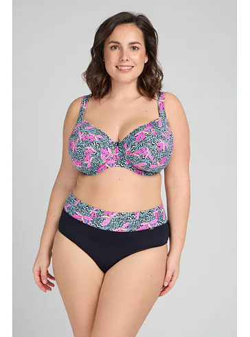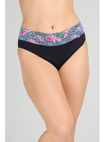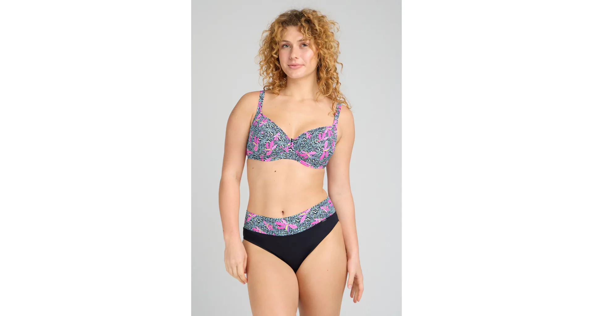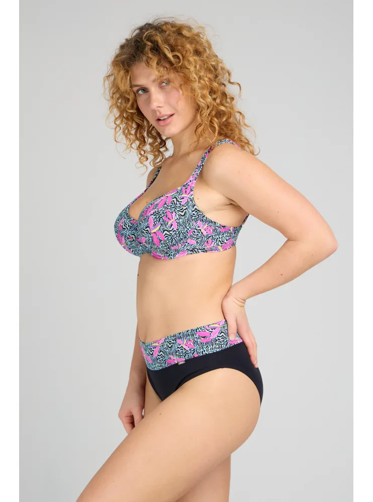 Vyššie plavkové nohavičky s nastaviteľnou výškou pása vytvarujú krásnu siluetu, prípadne sa dá horný lem vyhrnúť a získať tak klasické nohavičky. Perfektne sa prispôsobí vašim krivkám a zaistí pohodlie po celý deň. Poskytujú skvelú oporu, nikde netlačia a nezarezávajú sa. Čierne nohavičky zdobia lem s farebným letným vzorom. K nohavičkám môžete zaobstarať plavkovú podprsenku v strihu Comfy-Fit alebo T-Fit.