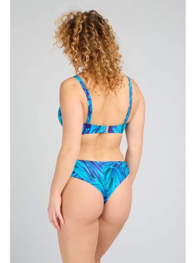 "Brazilky Aquamarin zaujmú tyrkysovými a modrými tónmi pripomínajúce morské vlny. Zaistia úplný komfort po celý deň a dokonale sa prispôsobia postave. Či už plánujete relax na ležadle alebo športové aktivity, plavky pevne sedia na svojom. leto a kúpte si dvojdielne plavky Triola.