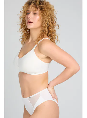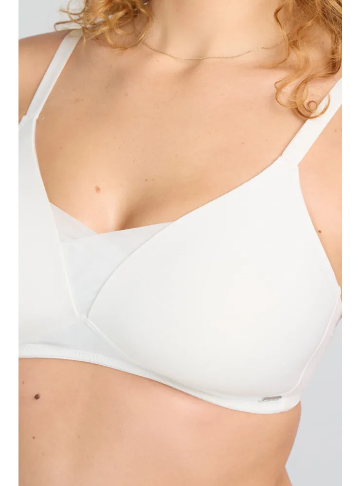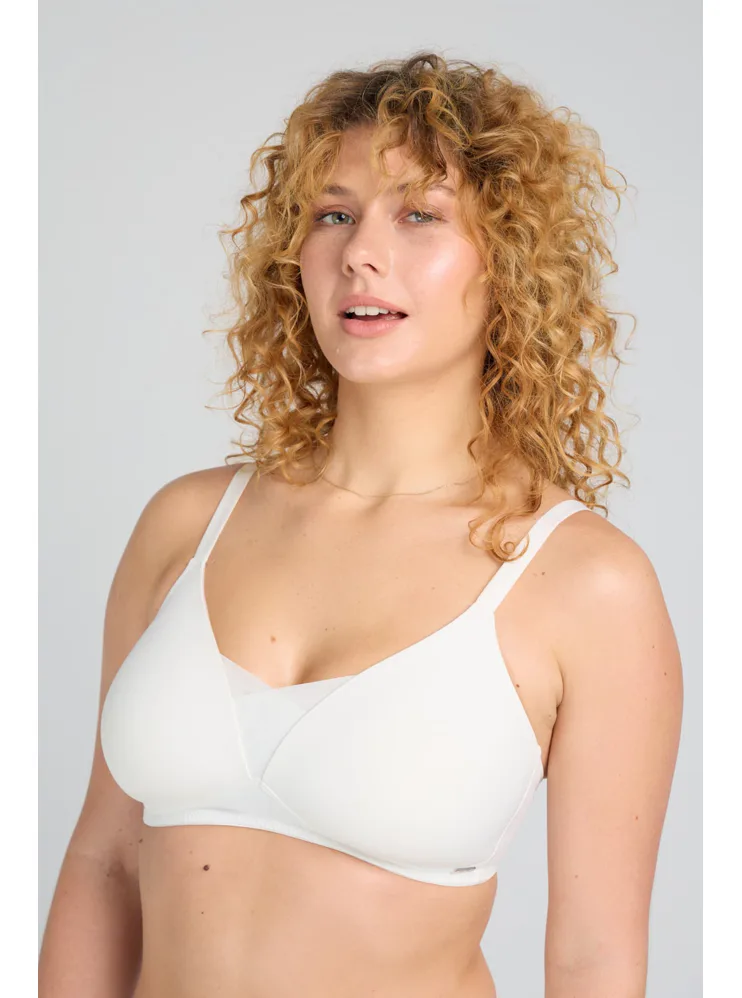 Podprsenka bez kostíc zaujme tylovou vsadkou vo výstrihu, ktorá prsia udrží na svojom mieste. Perlová podprsenka v hladkom prevedení sa nerysuje pod priliehavým oblečením. Zaručuje pocit voľnosti a maximálny komfort pri celodennom nosení. Pre všetky ženy milujúce minimalistický štýl. Zaobstarajte si k podprsenke aj klasické nohavičky a získajte tak kompletný set spodnej bielizne.
