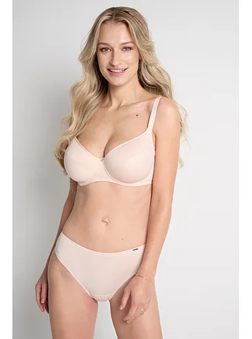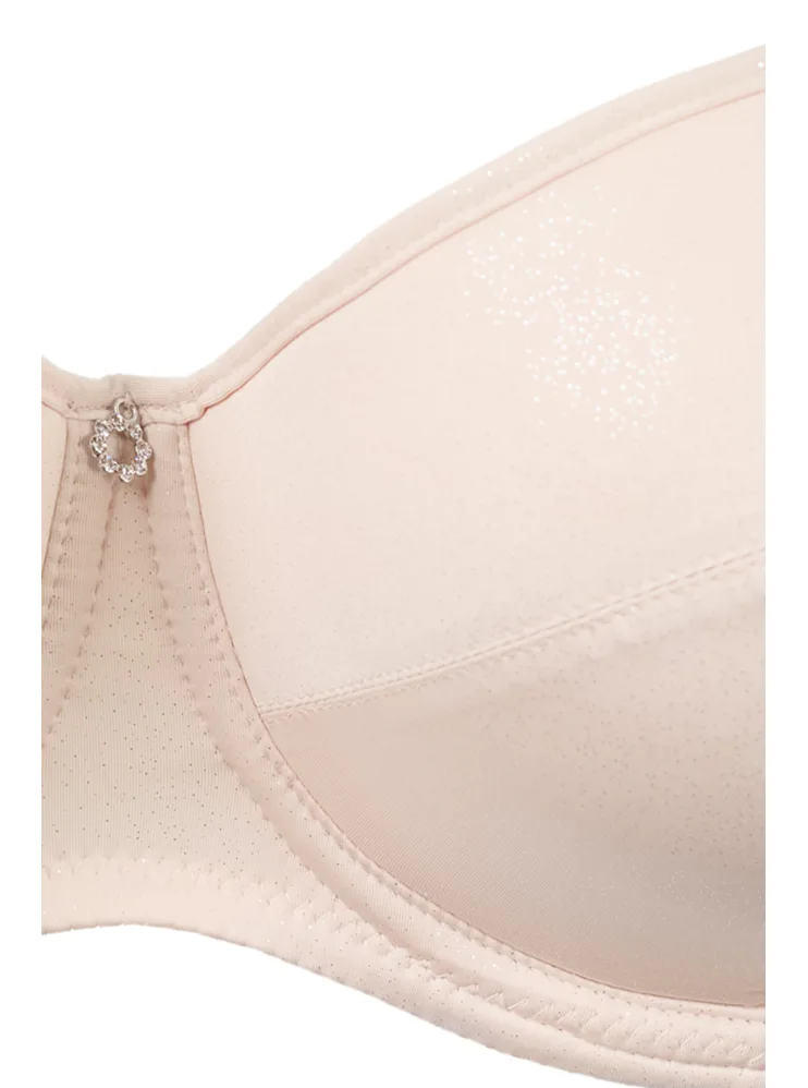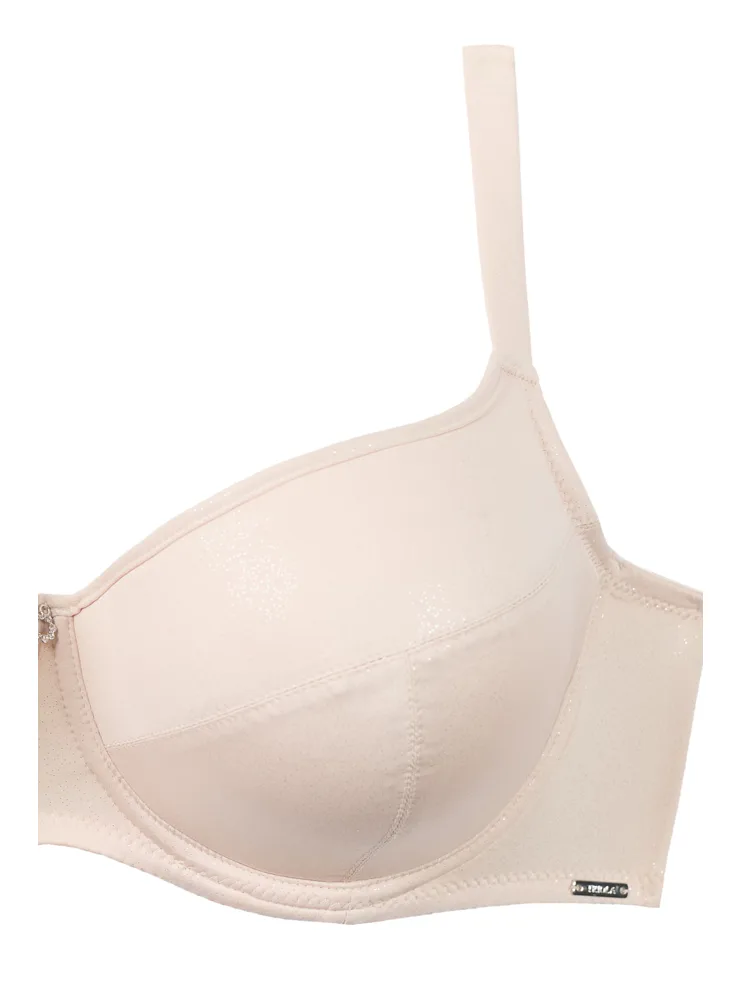 Tenko vystužená podprsenka s kosticami v strihu T-Fit poskytuje maximálnu oporu a vykúzli neodolateľný dekolt. Zaujme trblietavým úpletom v púdrovom odtieni, ktorý jej dodáva šmrnc. Dokonale sa prispôsobí telu a nikde netlačí. Potiahnuté pohodlné ramienka je možné nastaviť podľa potreby. Zapínanie má vzadu na háčiky. Ideálne na každodenné nosenie aj špeciálne príležitosti. Zaobstarajte si k podprsenke aj obľúbené klasické nohavičky.