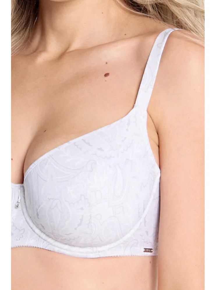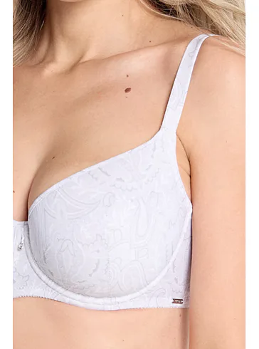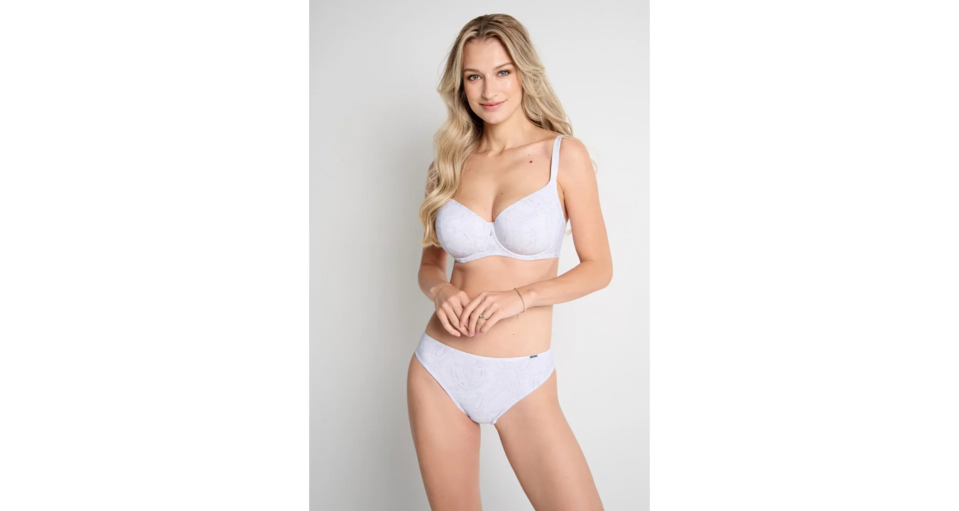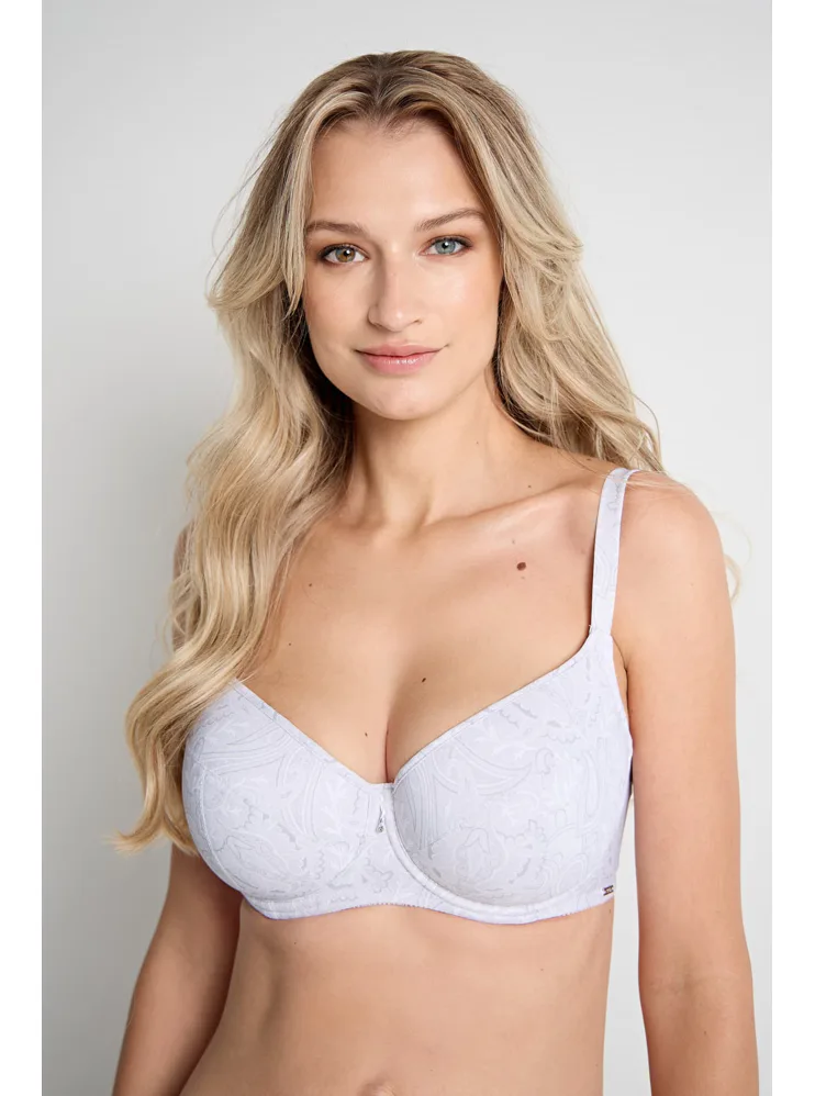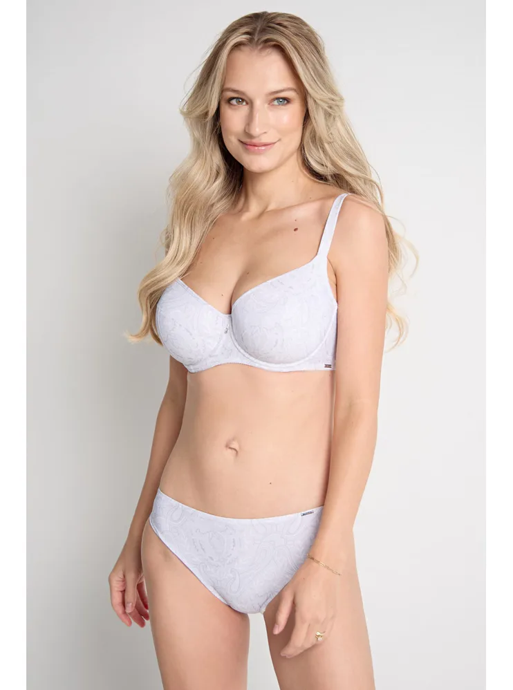Tenko vystužená podprsenka s kosticami zaujme úpletom s potlačou talianskej výroby, ktorý má jemný vzor s matným efektom. Poprsiu poskytne potrebnú oporu a podčiarkne vaše prirodzené krivky. Potiahnuté pohodlné ramienka sú dostatočne pružné a dajú sa nastaviť podľa potreby. Vzadu nájdete zapínanie na dva háčiky. Zaobstarajte si podprsenku v strihu T-Fit, ktorá vaše poprsie pevne zafixuje.