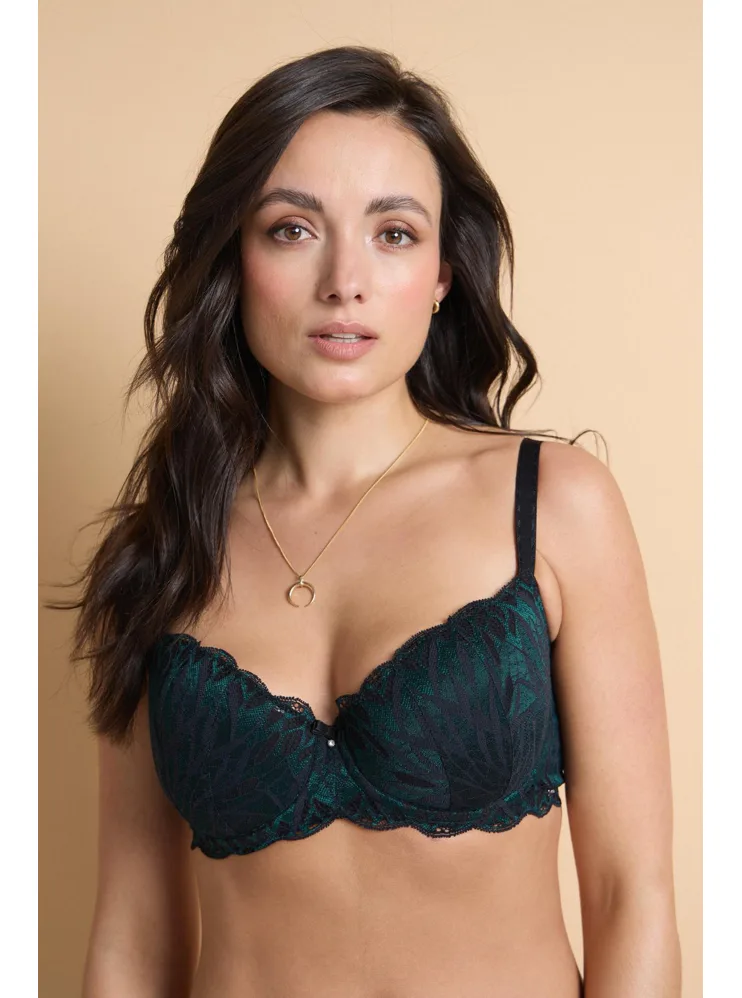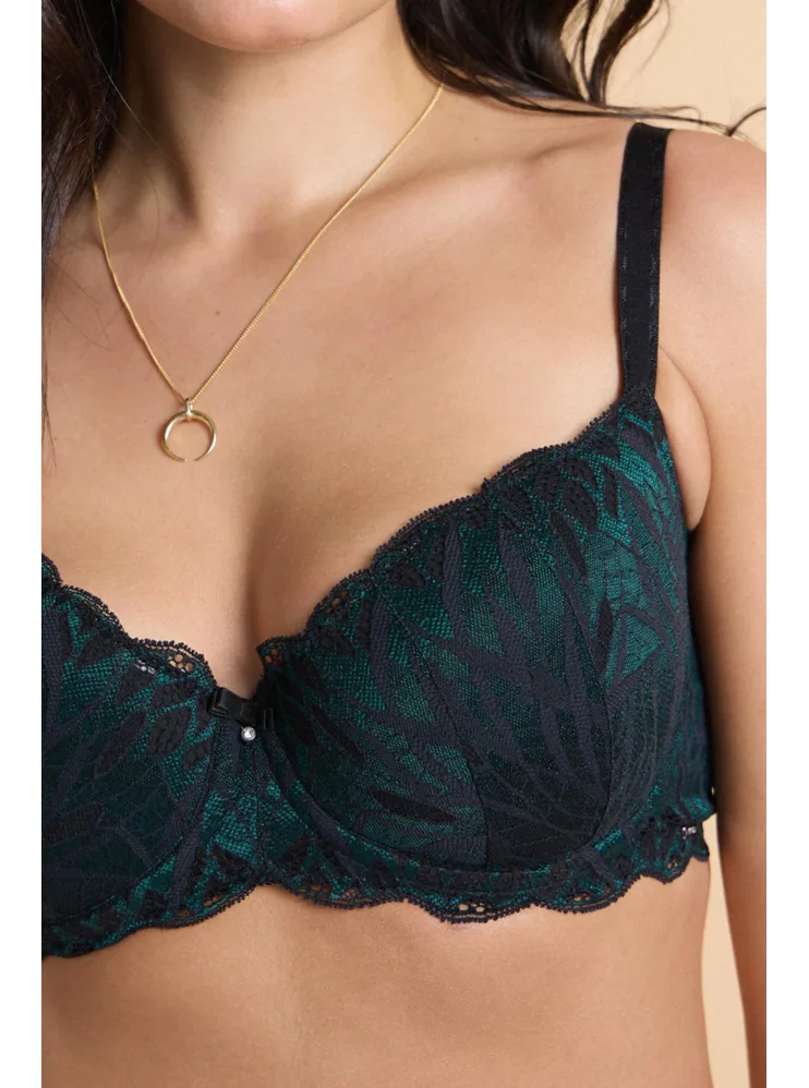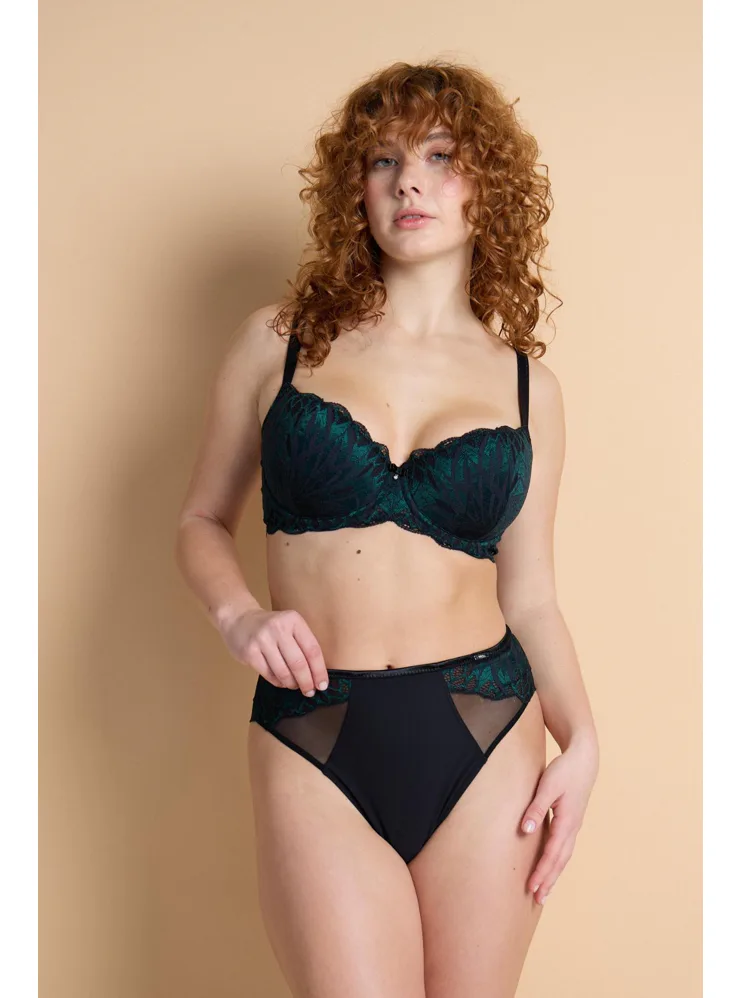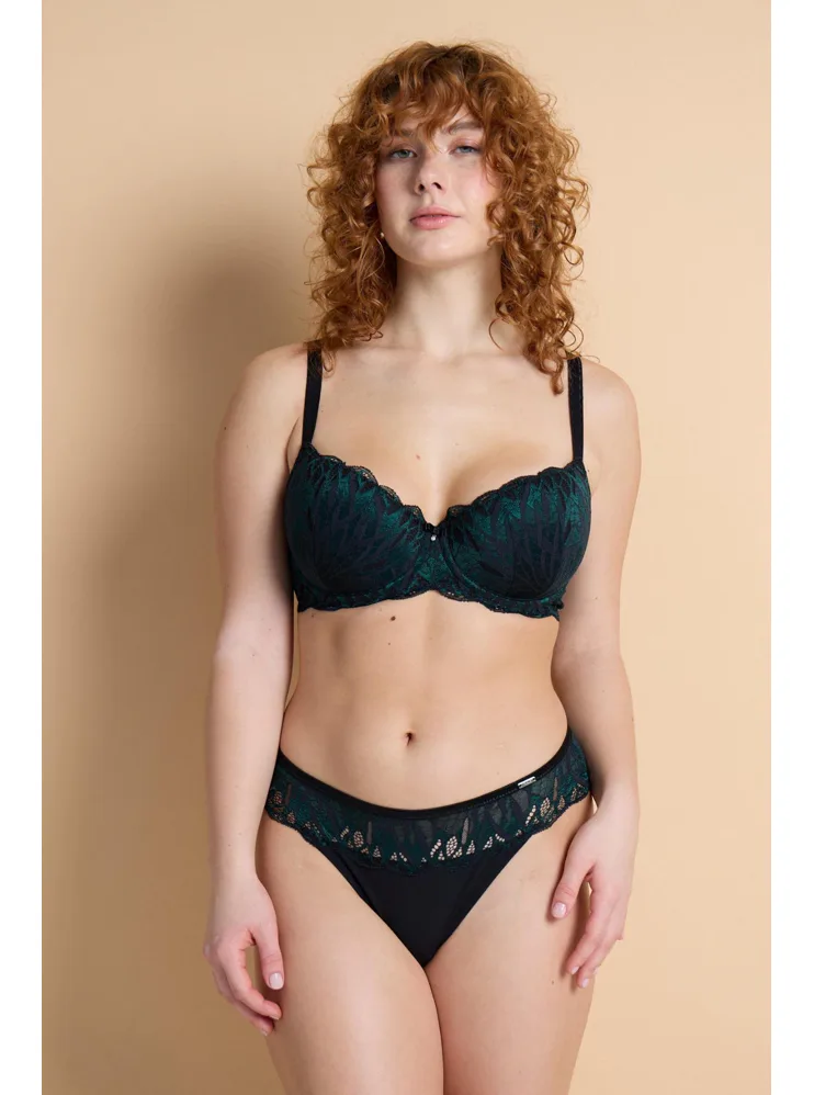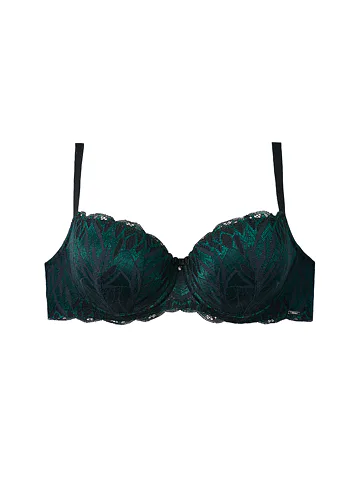 Balkónová podprsenka, čierno-zelená čipka
