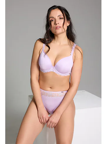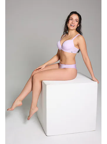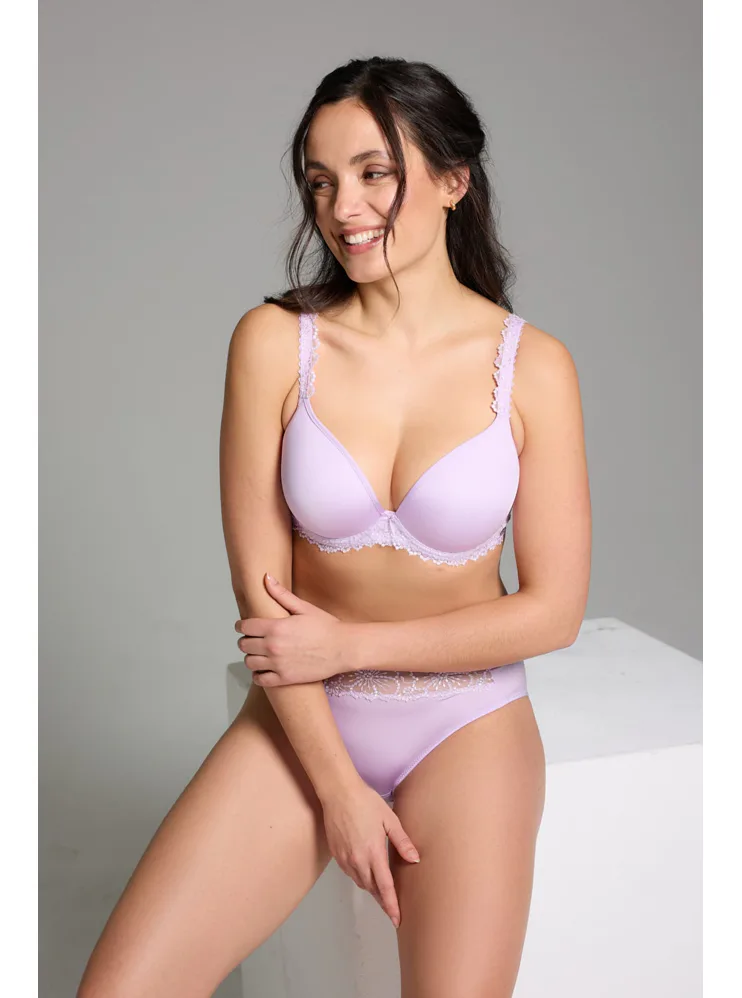 Fialová podprsenka Viola v strihu Top-Fit upúta pozornosť exkluzívnou výšivkou pôvodom zo severného Francúzska. Koše sú potiahnuté jemným úpletom. Dokonale sa prispôsobí vášmu pohybu a vykúzli neodolateľný dekolt. Zdobené ramienka je možné nastaviť podľa potreby. K podprsenke môžete zaobstarať aj klasické nohavičky či brazilky. Nechajte sa rozmaznávať a doprajte si kvalitnú spodnú bielizeň Triola.