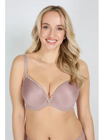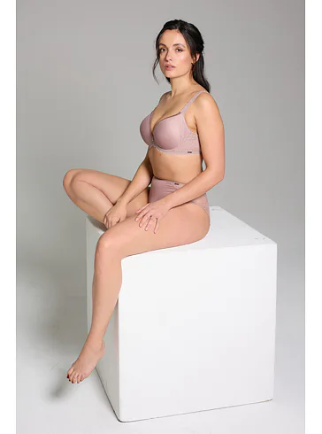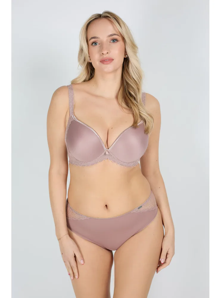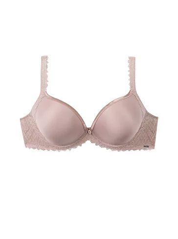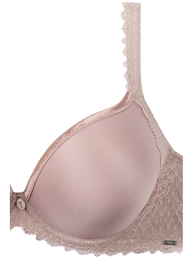 Tenko vystužená podprsenka s kosticami v strihu Top-Fit má hladké a lesklé koše potiahnuté úpletom v kvalite Ultrafein. Nerysuje sa pod oblečením a poskytuje potrebnú oporu. Čipka s bohatým vzorom zdobí nielen obvod podprsenky, ale aj boky košíčkov a nastaviteľné ramienka. Zapínanie má vzadu na háčiky. Podprsenka v obľúbenom nugátovom odtieni podčiarkne vašu ženskosť a zaistí komfort pri celodennom nosení.