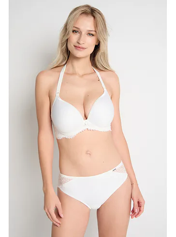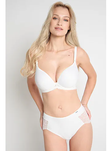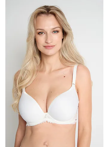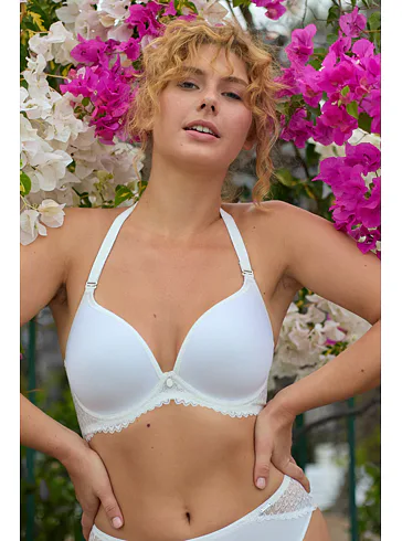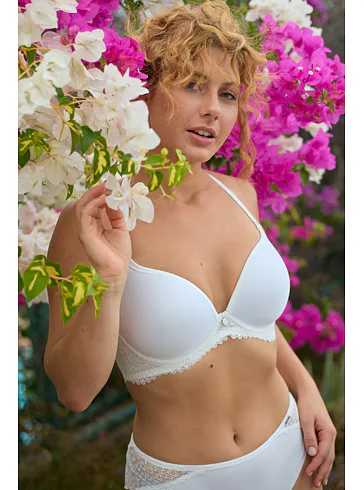 Elegantná podprsenka Maja v krásnej perlovej farbe je perfektnou voľbou do hlbokých výstrihov, poprsiu poskytne potrebnú oporu. Rafinovaná čipka s bohatým vzorom zdobí obvod podprsenky. Jemná viskóza dodáva čipke lesk. Bezšvíkové hladké koše s povrchom Ultrafein sa nerysujú pod oblečením. Nastaviteľné ramienka je možné zopnúť klasicky, za krkom či ich plne odopnúť. Urobte si radosť podprsenkou, ktorá podčiarkne vašu ženskosť a zaistí komfort pri celodennom nosení.