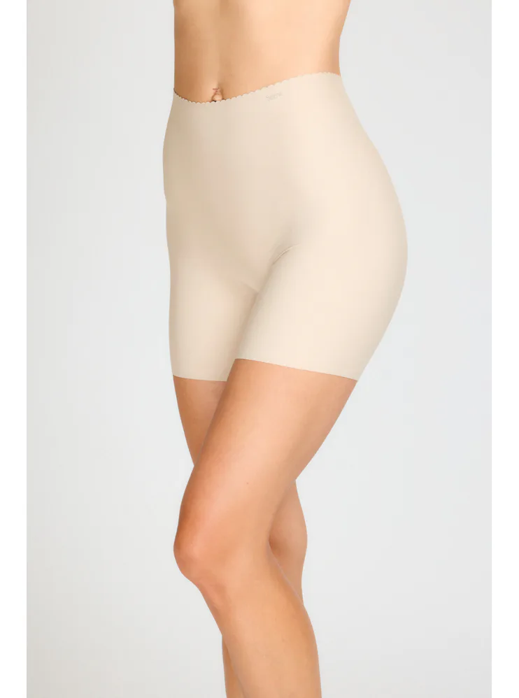 Dámske béžové šortky sú vyrobené z mikrovlákna a vďaka laser cut technológii sa nikde nezarezávajú a neškrtia cez stehná. Šev sa nachádza iba na zadnej strane. Poskytujú pohodlie a zabraňujú nepríjemnému odretiu vnútorných stehien.