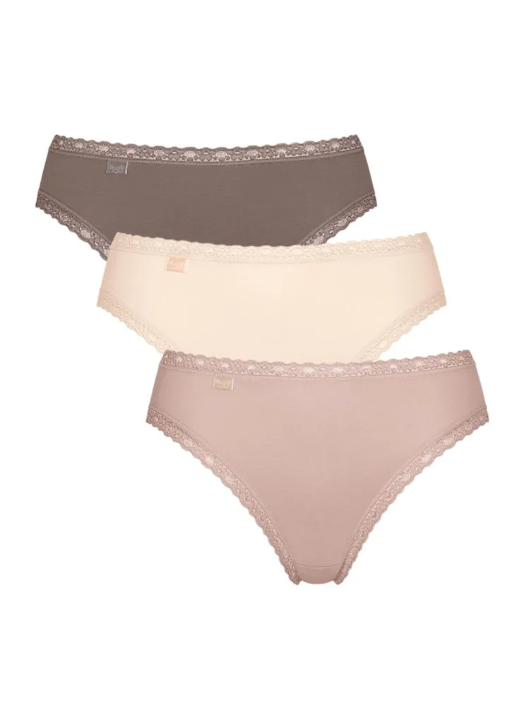 Dámske nohavičky klasického strihu sú vyrobené z jemnej bavlny, ktorá vyniká nielen svojou priedušnosťou a hypoalergénnymi vlastnosťami, rovnako dobre absorbuje vlhkosť a rýchlo schne. Tri kusy klasických nohavičiek Sloggi 24/7 vás očarí krajkovým lemovaním. Nohavičky nikde neškrtia a nezarezávajú sa. Spoľahnite sa na pohodlie a kúpte si klasiku, ktorá nikdy nevyjde z módy.