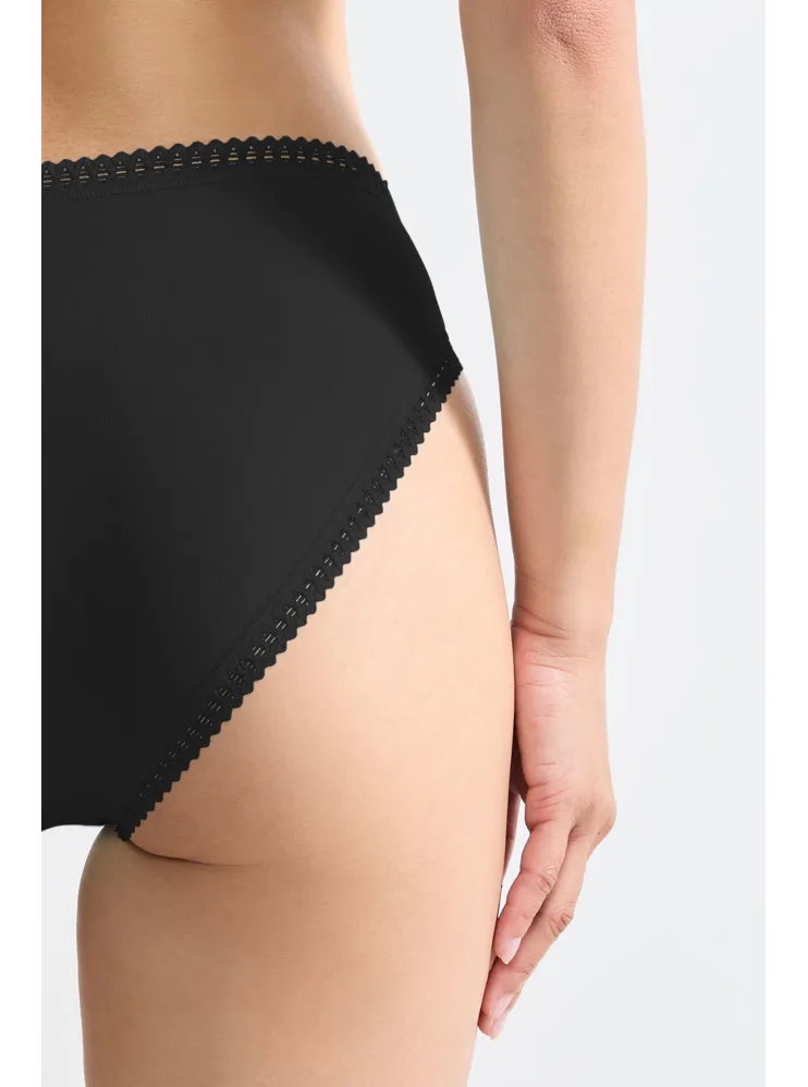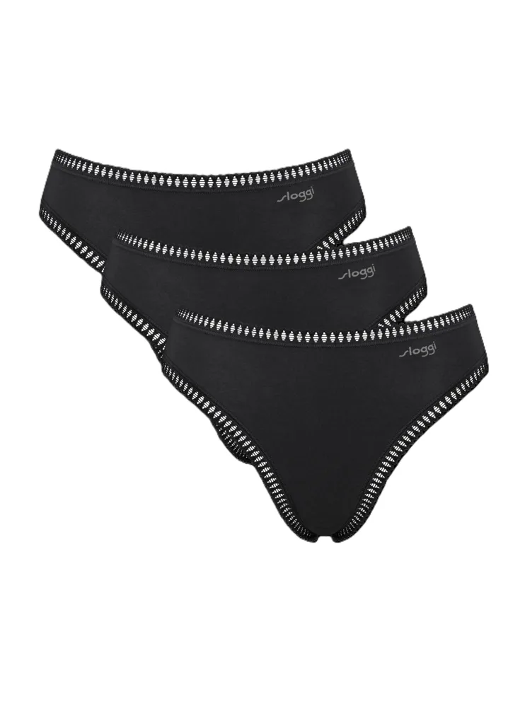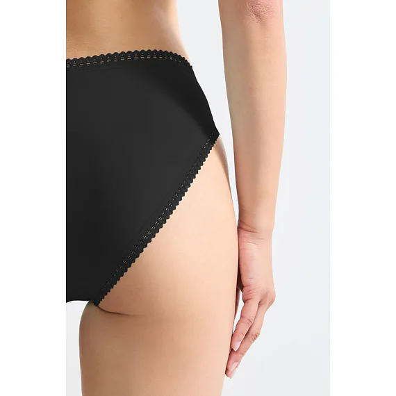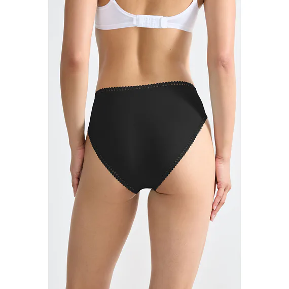Dámske nohavičky klasického strihu sú ideálne na každodenné nosenie. Čierne nohavičky lemované ozdobnou výšivkou poskytujú maximálny komfort, perfektne sedia a zakryjú vaše pozadie. Zaobstarajte si výhodnú sadu troch kusov.