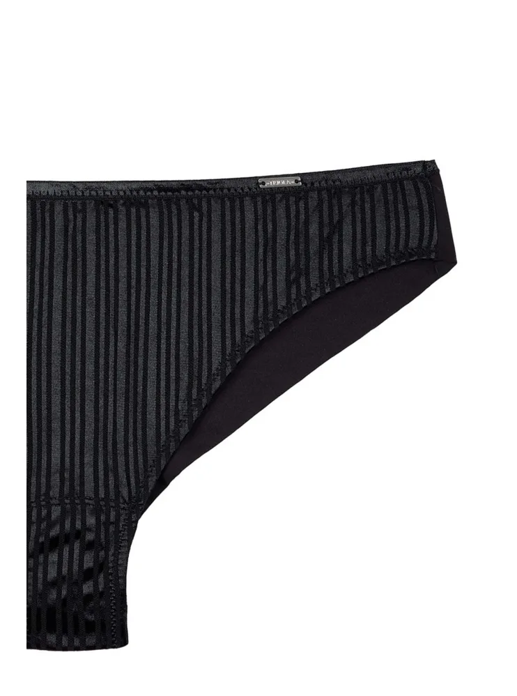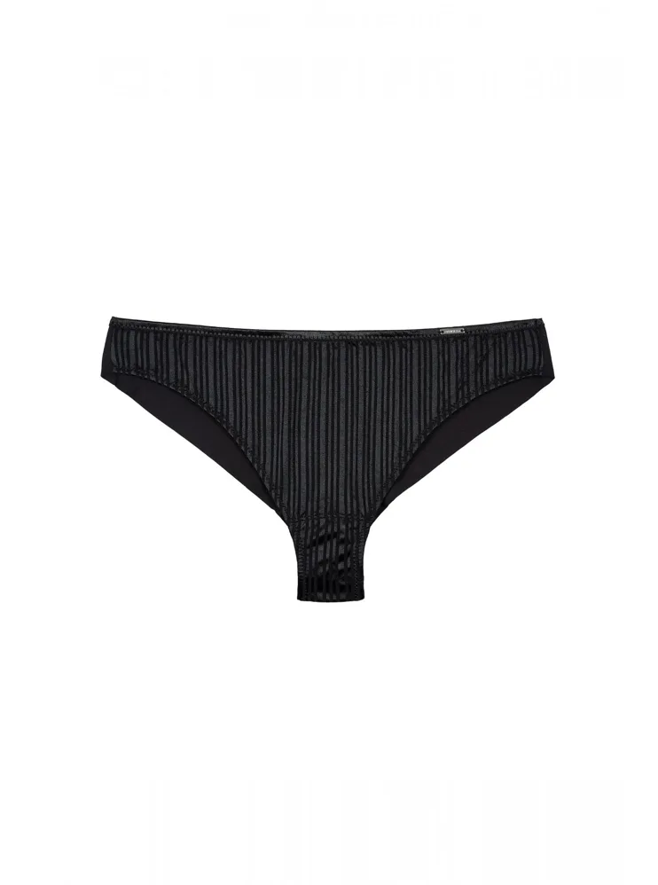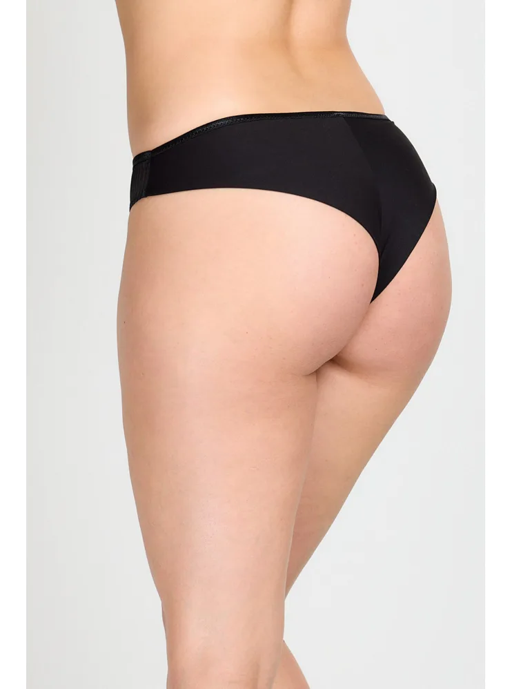 Podčiarknite svoje sexy ženské krivky v nohavičkách Brazílskeho strihu. Nohavičky majú hladký predný aj zadný diel a nerysujú sa pod oblečením. Vpredu materiál zdobia lesklé prúžky. Nohavičky dokonale sadnú a zaistia maximálny komfort pri celodennom nosení.