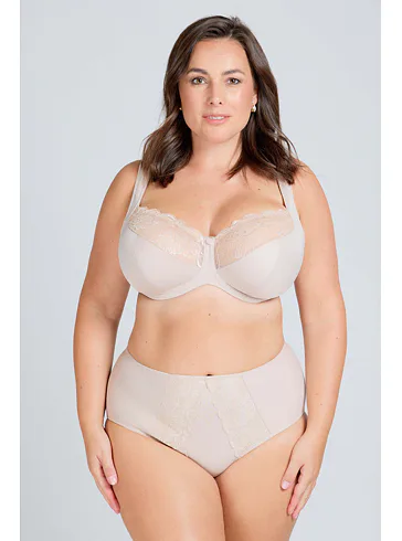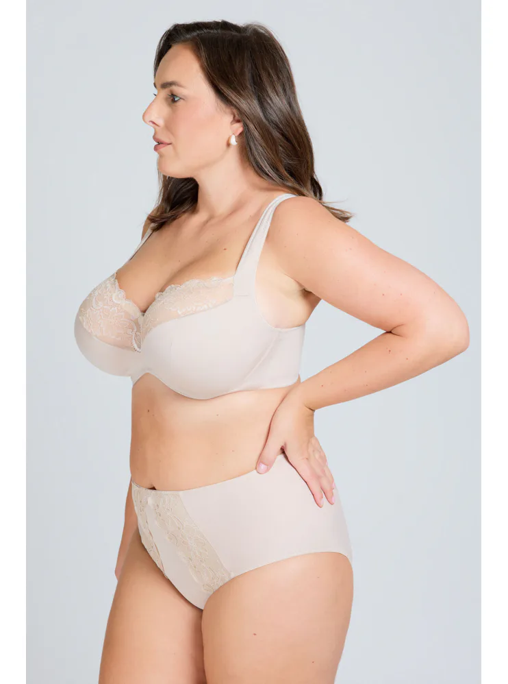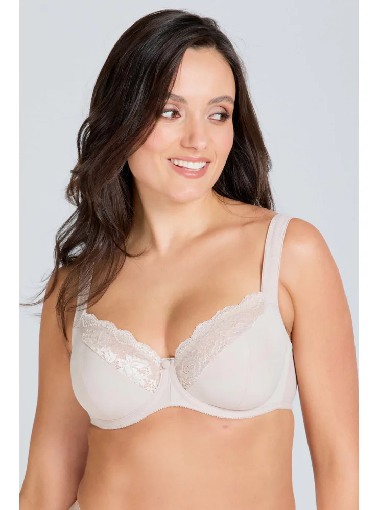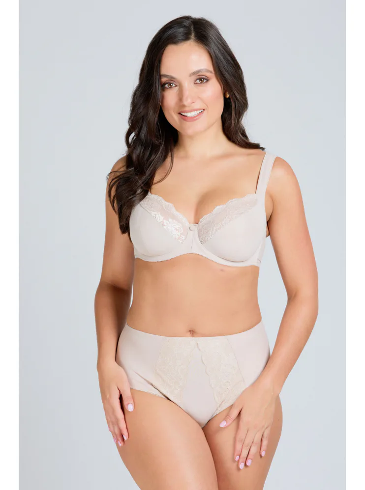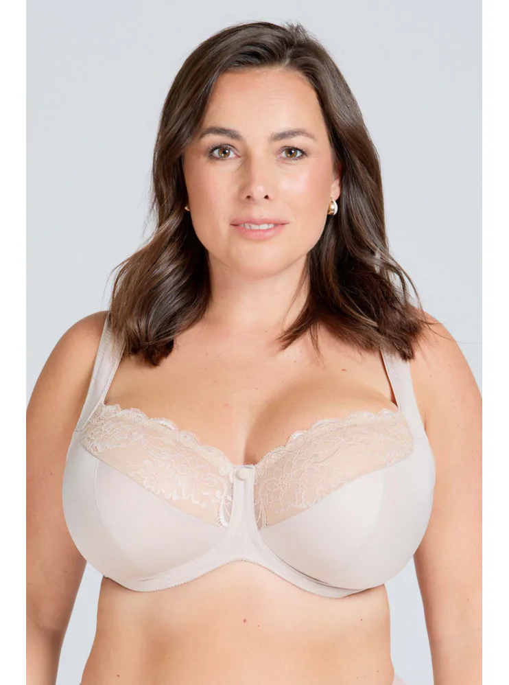 Elegantná podprsenka s nevystuženými košíčkami v bežovej farbe vás uchváti čipkovými detailmi, ktoré jej dodávajú romantický nádych. Vytvorí prirodzený vzhľad dekoltu. Flexi kostice sa dokonale prispôsobí každému vášmu pohybu. Ideálna voľba pre ženy, ktoré hľadajú kombináciu štýlu a vynikajúcej opory.