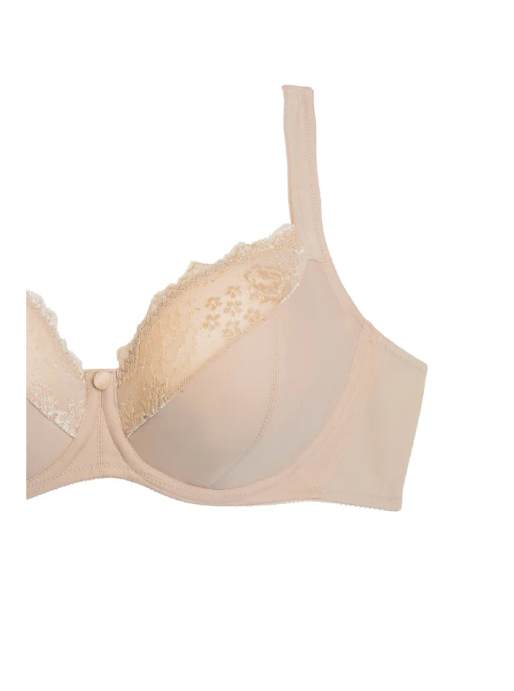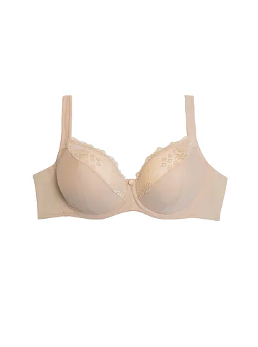 Rafinovaná podprsenka s elastickou čipkou dokonale fixuje prsia na stredu a spevňuje ich v požadovanej výške. Inovatívne flexi kostice a širšie ramienka zaisťujú maximálny komfort po celý deň. Vyrobená z funkčného jemného úpletu.