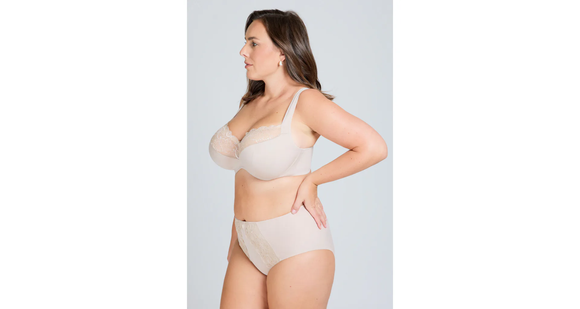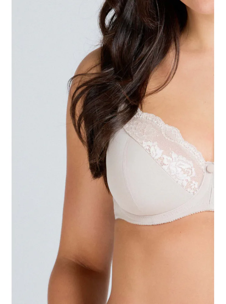 Nevystužená podprsenka s čipkou v béžovej farbe